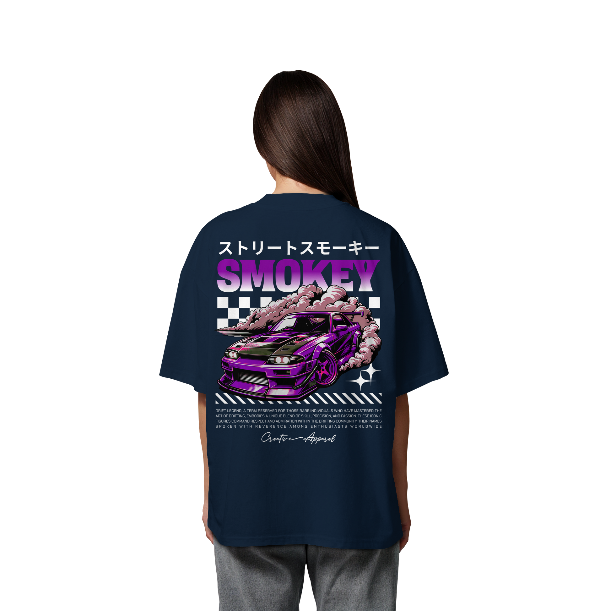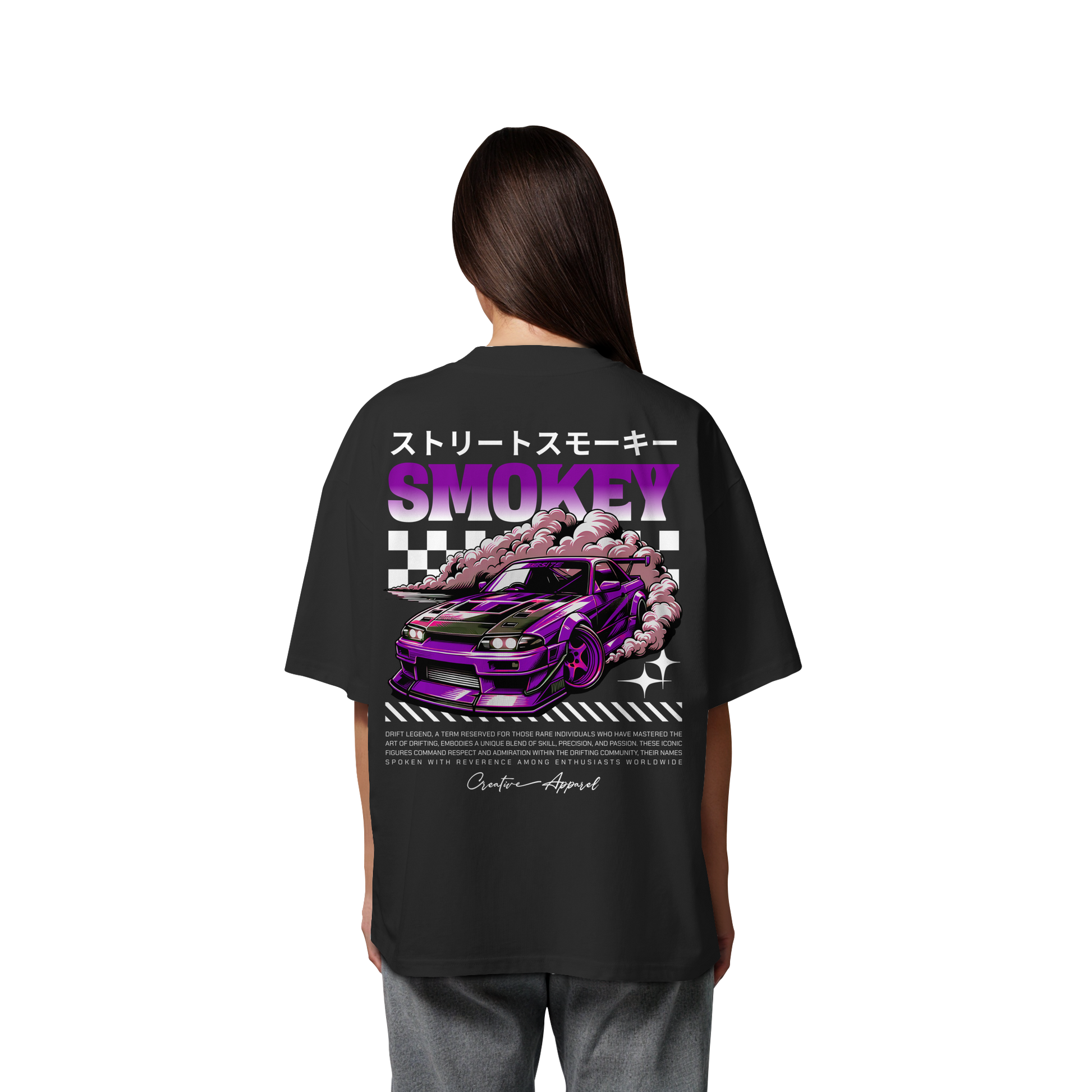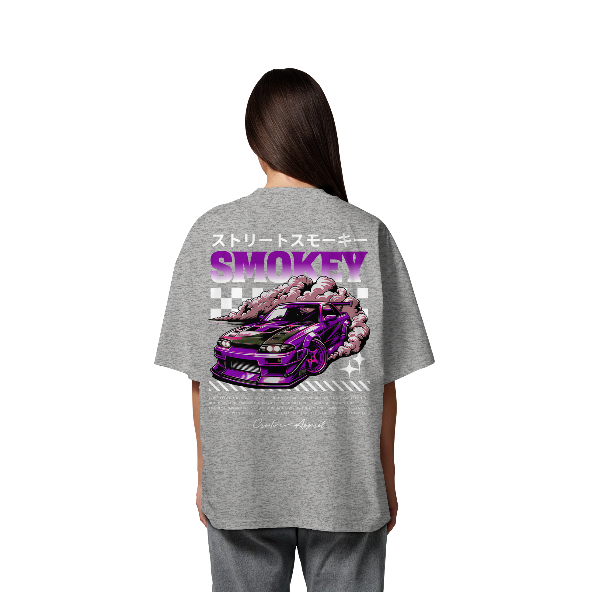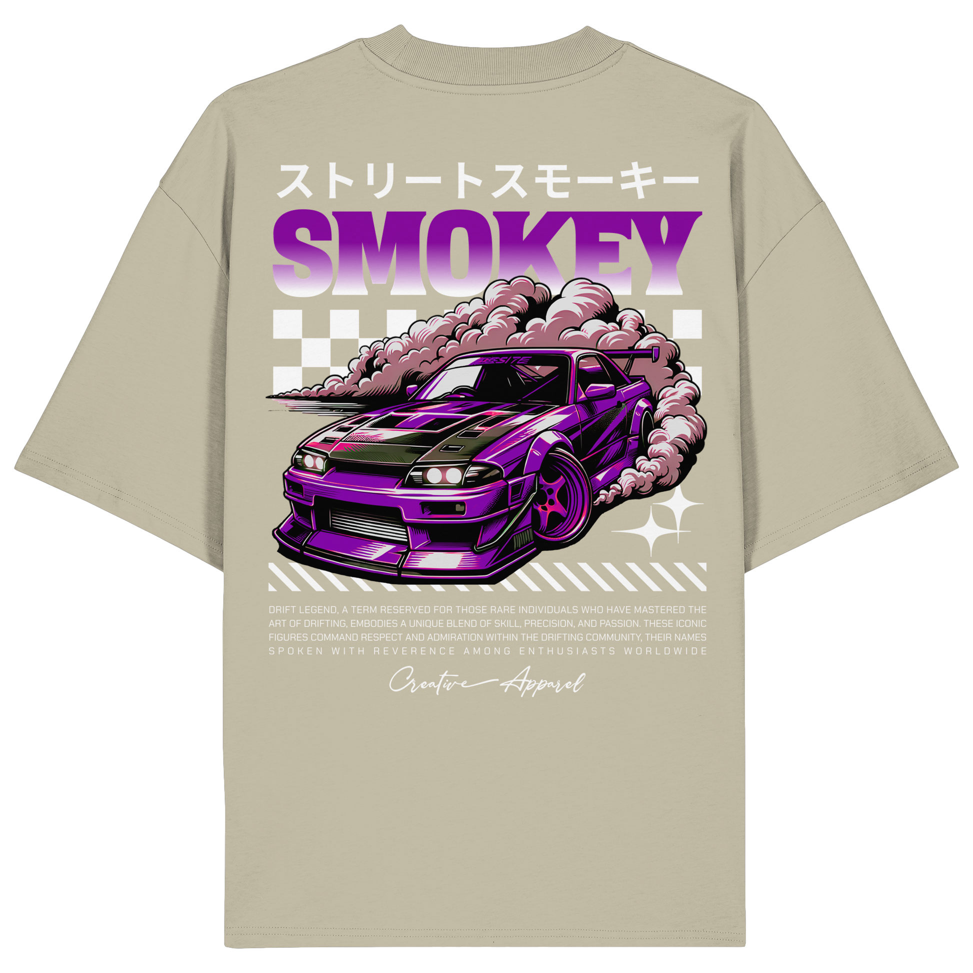 Der Schriftzug 'SMOKEY' in fettem, modernem Stil verstärkt die Botschaft von Geschwindigkeit und Abenteuerlust.