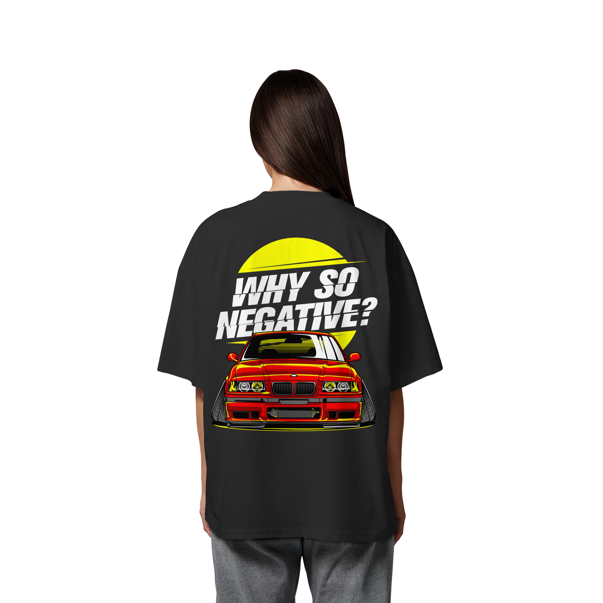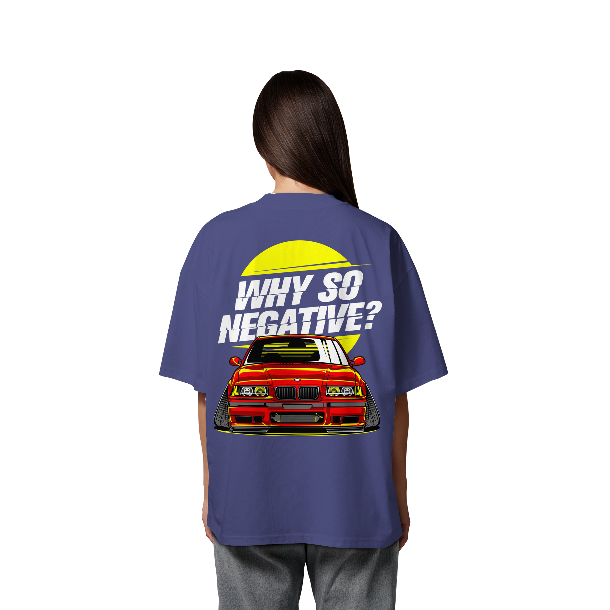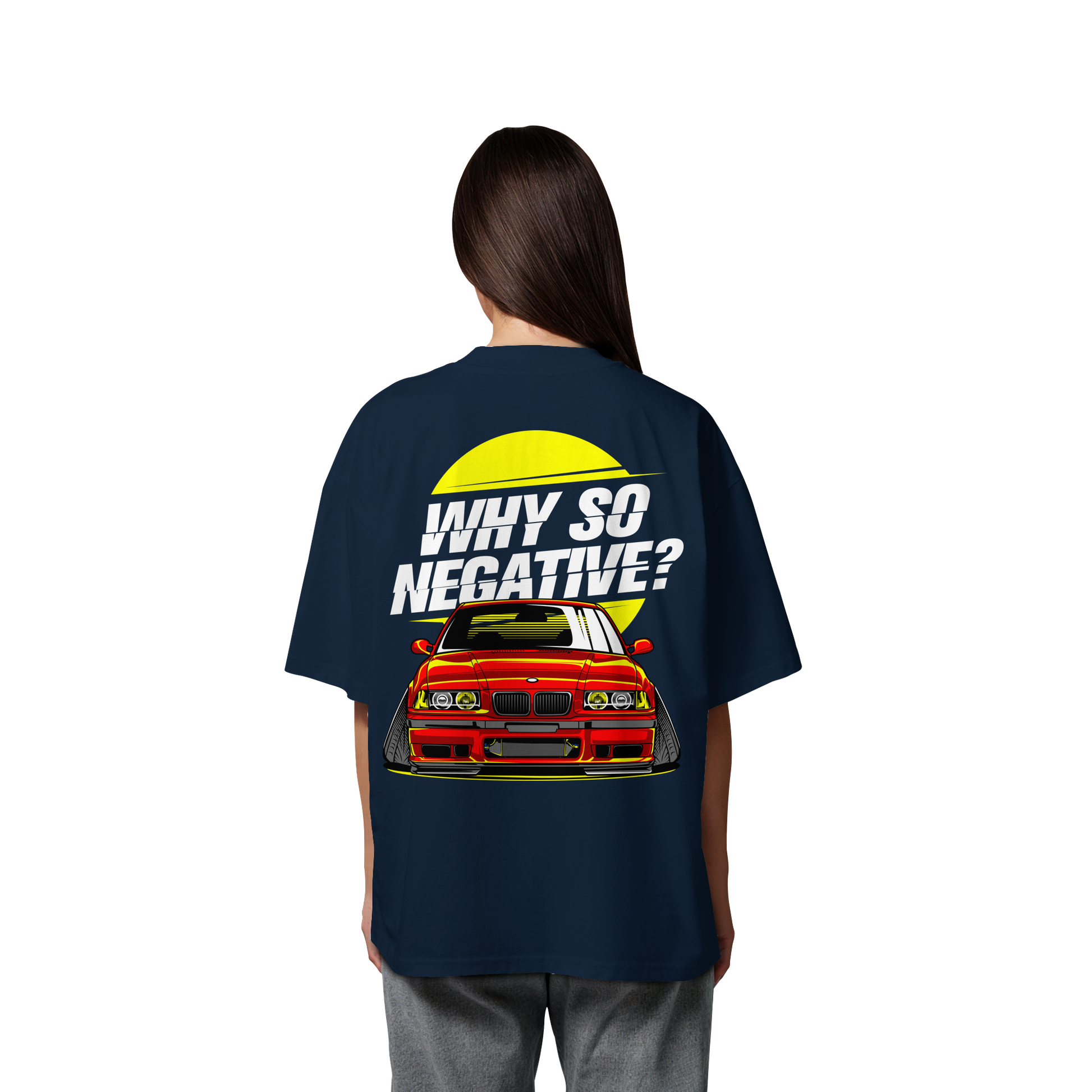 Erlebe den Nervenkitzel der Straße mit unserem "Car - Organic Oversize Shirt". Dieses T-Shirt ist mehr als nur ein Kleidungsstück; es ist ein Ausdruck von Freiheit und Individualität. Die auffällige Illustration eines roten Sportwagens, ergänzt durch den provokativen Slogan "Why So Negative?", ist ein Statement für alle, die sich nicht mit dem Gewöhnlichen zufrieden geben.