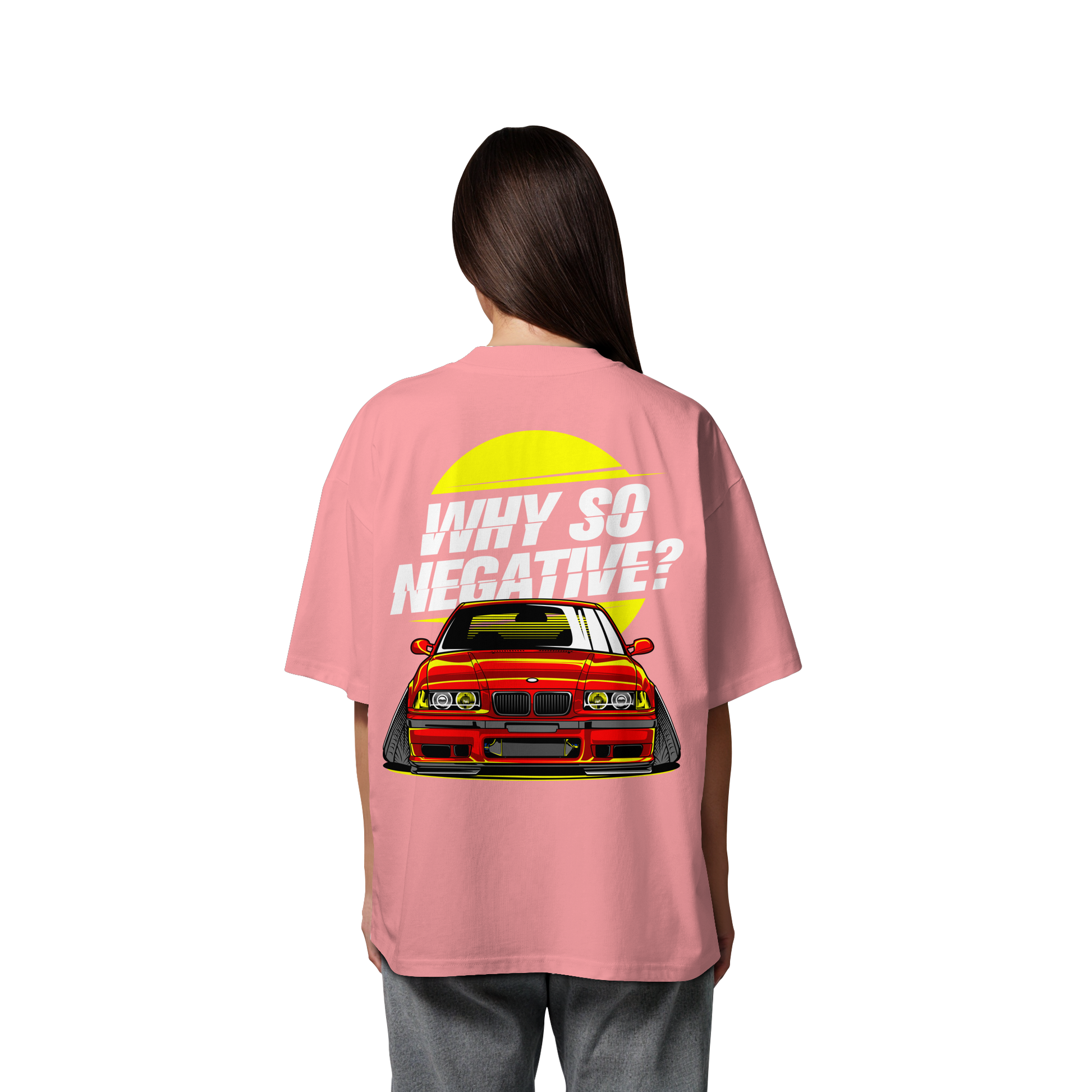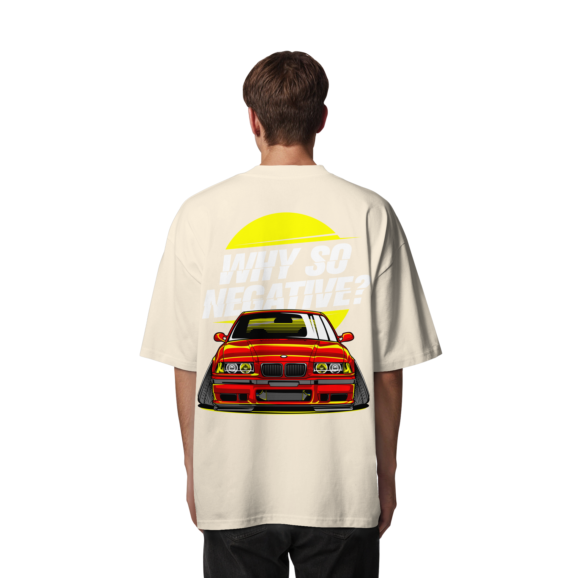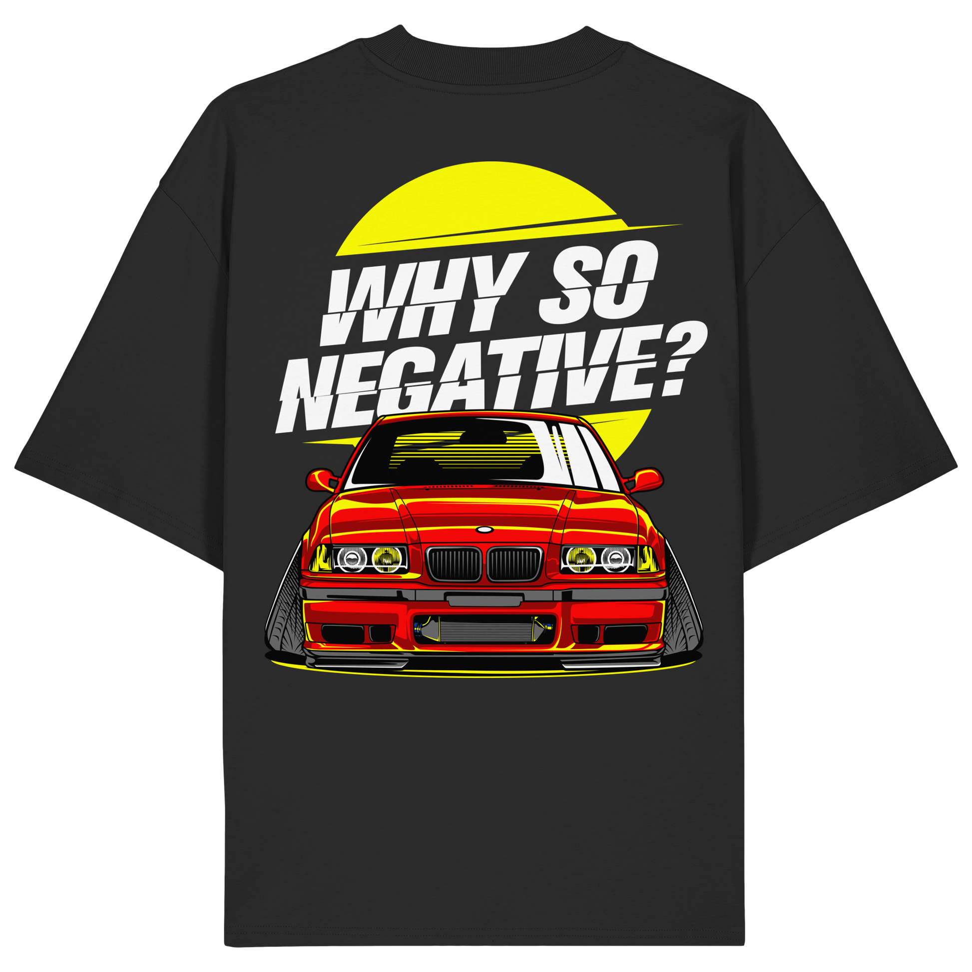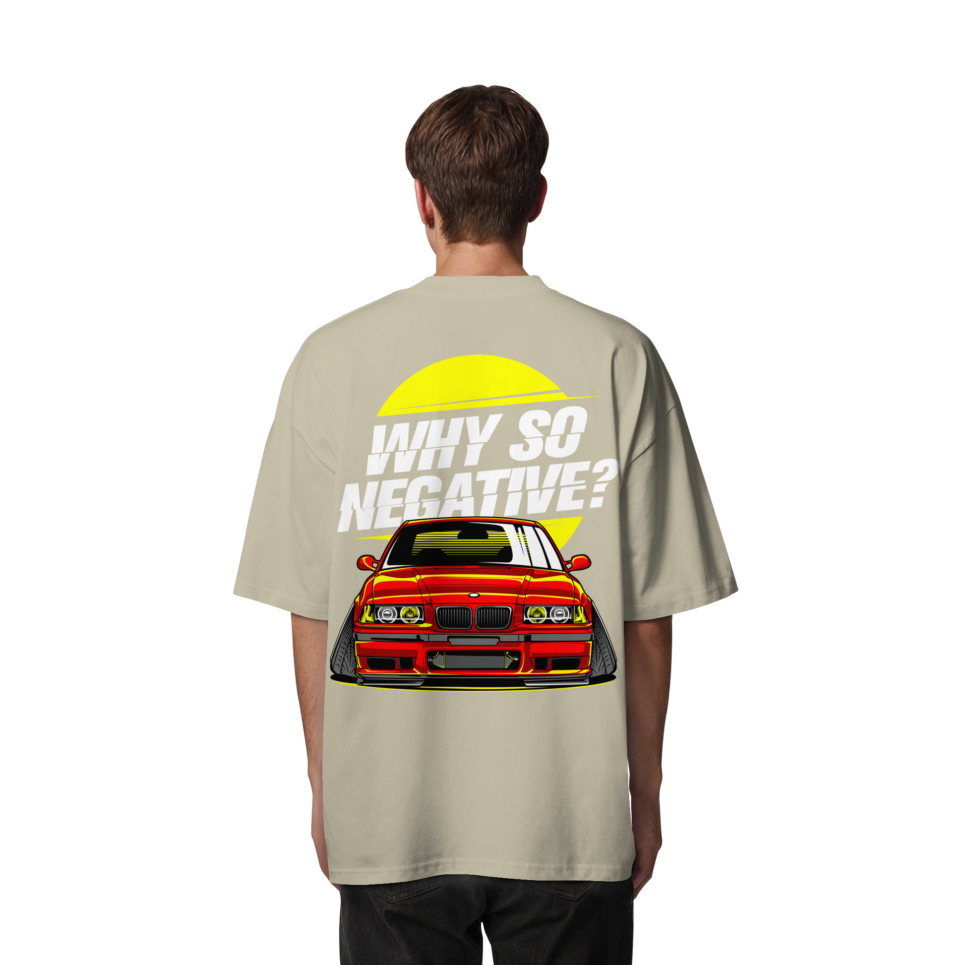 Erlebe den Nervenkitzel der Straße mit unserem "Car - Organic Oversize Shirt". Dieses T-Shirt ist mehr als nur ein Kleidungsstück; es ist ein Ausdruck von Freiheit und Individualität. Die auffällige Illustration eines roten Sportwagens, ergänzt durch den provokativen Slogan "Why So Negative?", ist ein Statement für alle, die sich nicht mit dem Gewöhnlichen zufrieden geben.