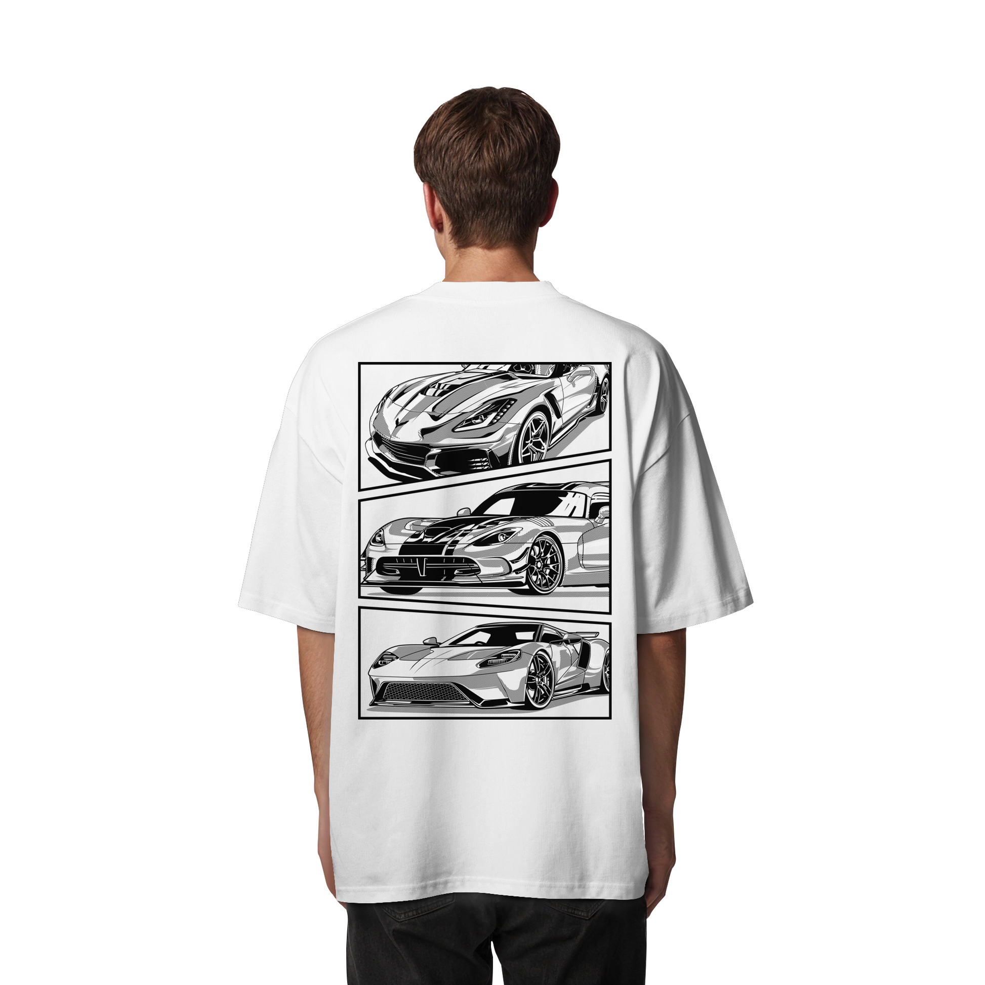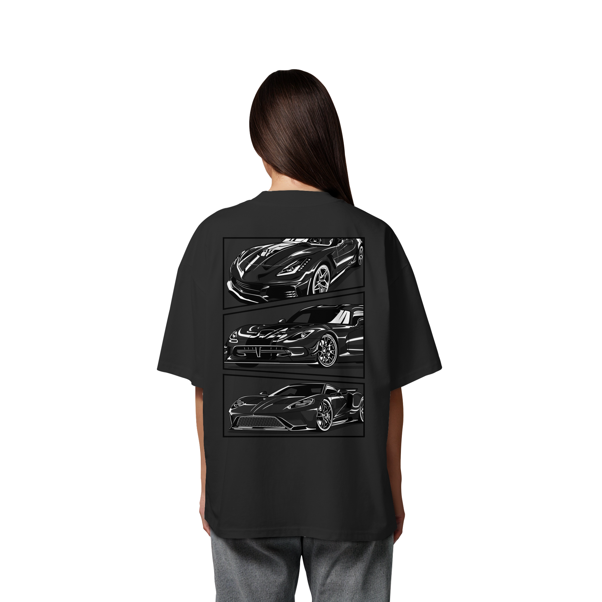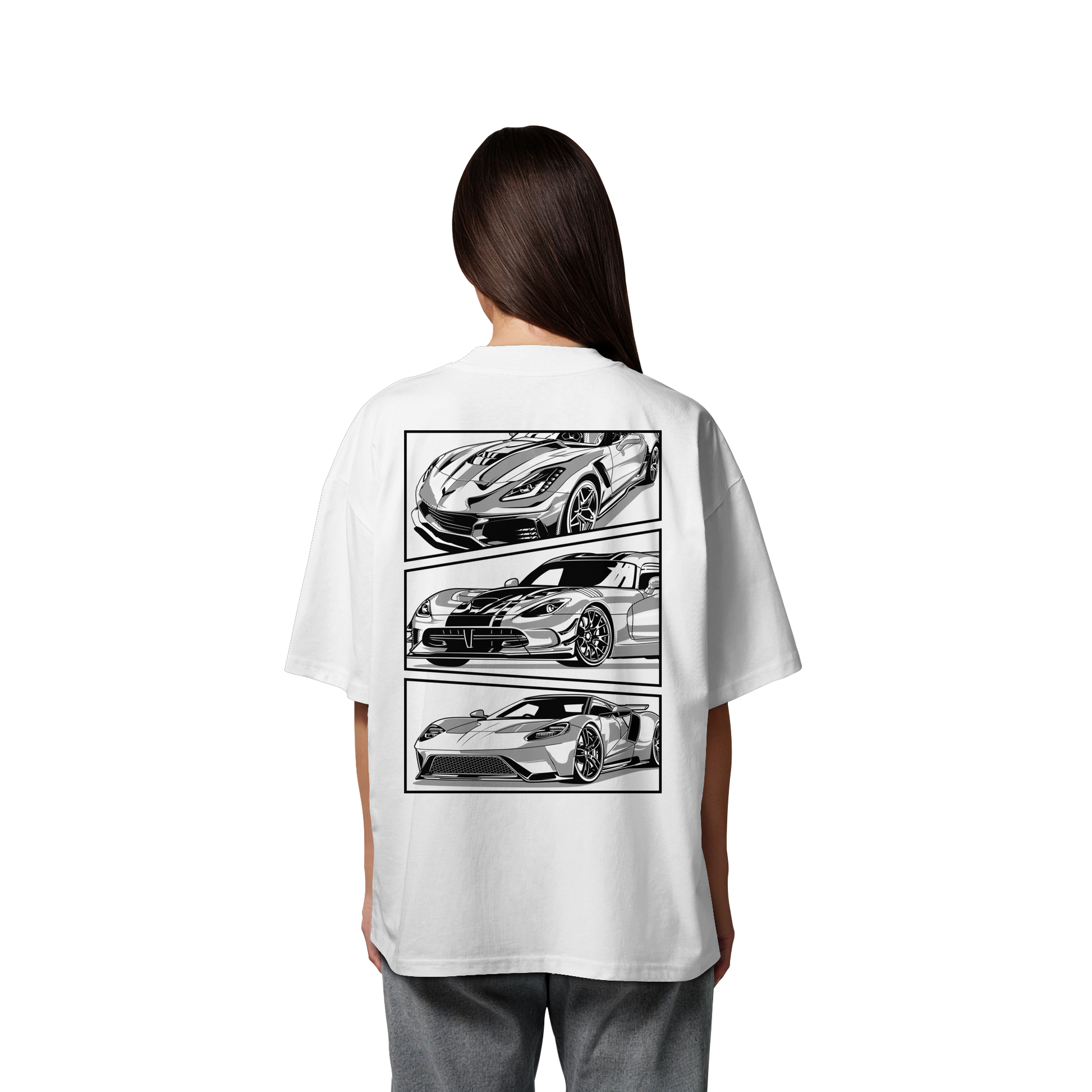 Unser "Car - Organic Oversize Shirt" fängt die Essenz von Geschwindigkeit und Eleganz ein. Mit kunstvollen Autodesigns, die in kühlem Schwarz und Weiß strahlen, spricht dieses Shirt die Herzen von Autoliebhabern an.