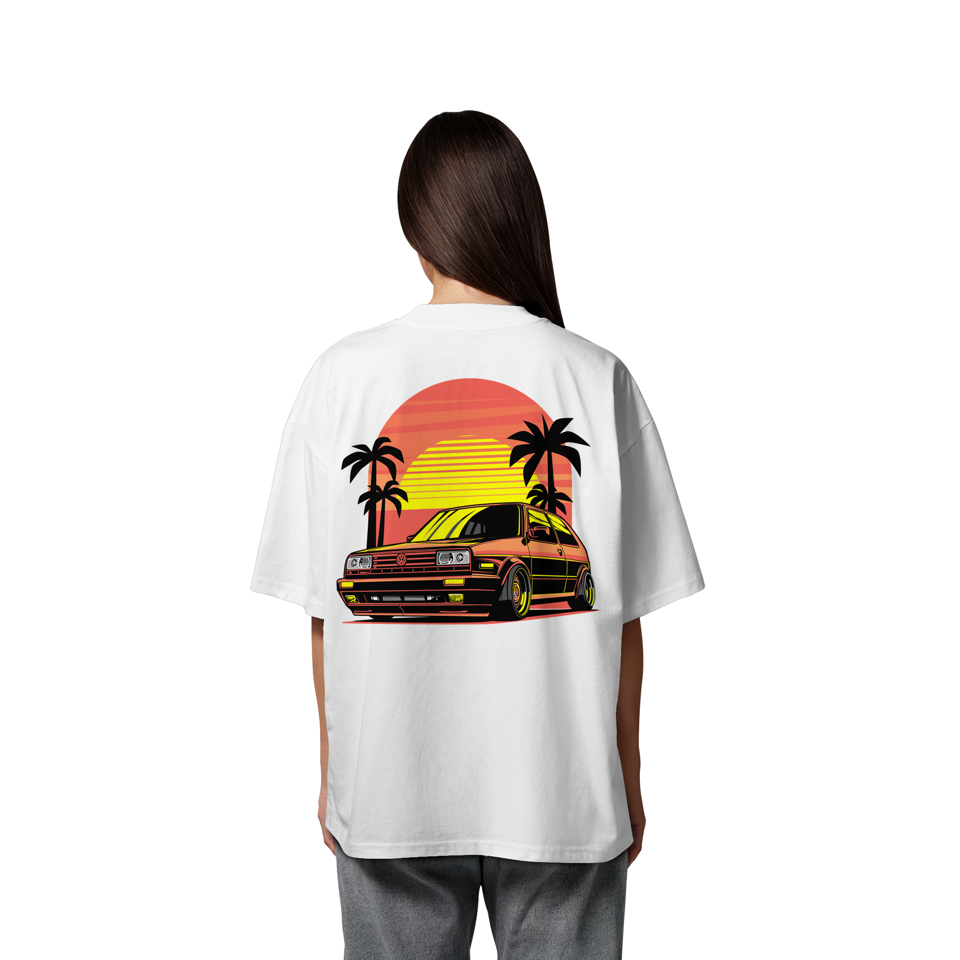 Erlebe das Gefühl der Freiheit mit unserem limitierten "Vintage Sunset Car - Organic Oversize Shirt"! Dieses T-Shirt verbindet urbane Coolness mit einem Hauch von Nostalgie.