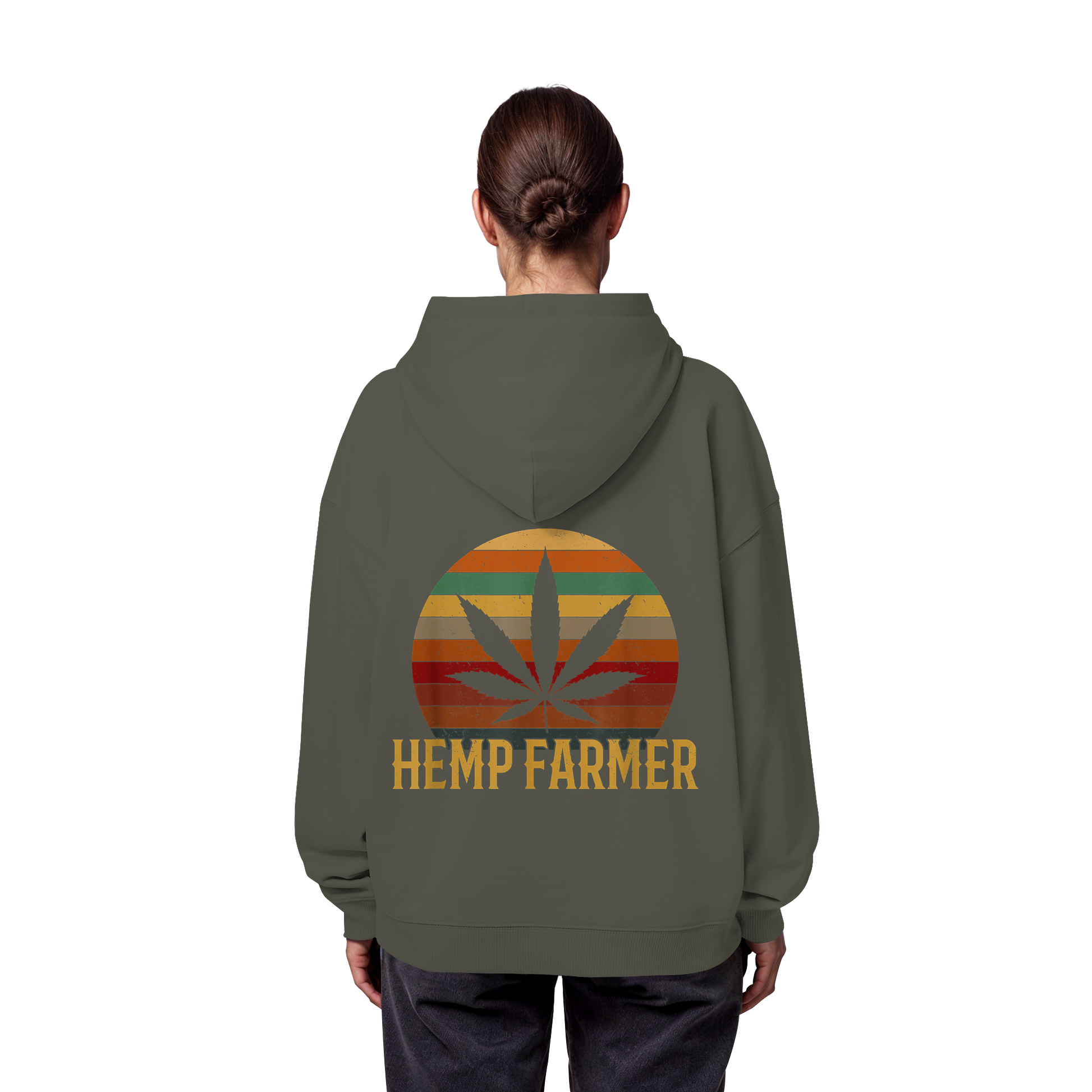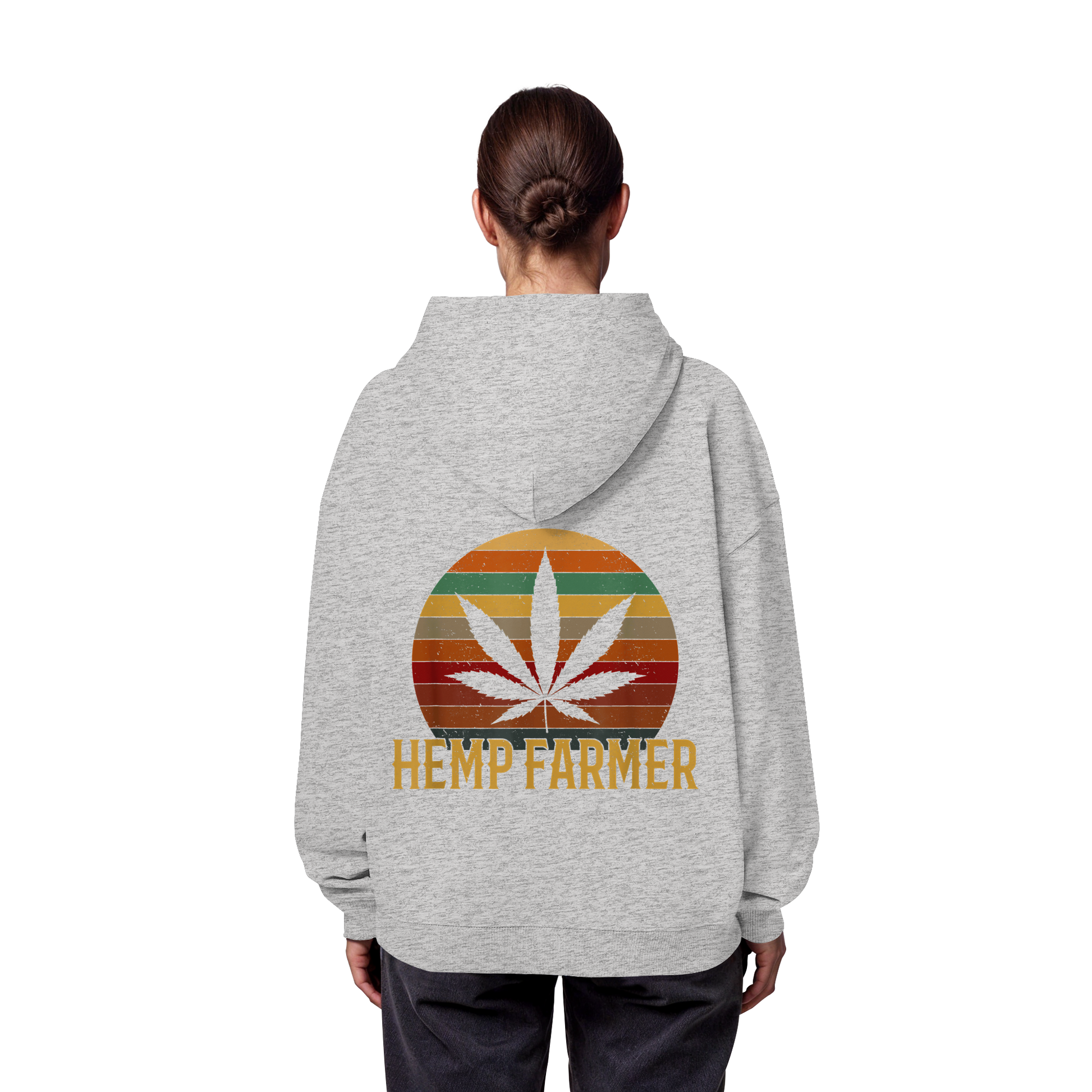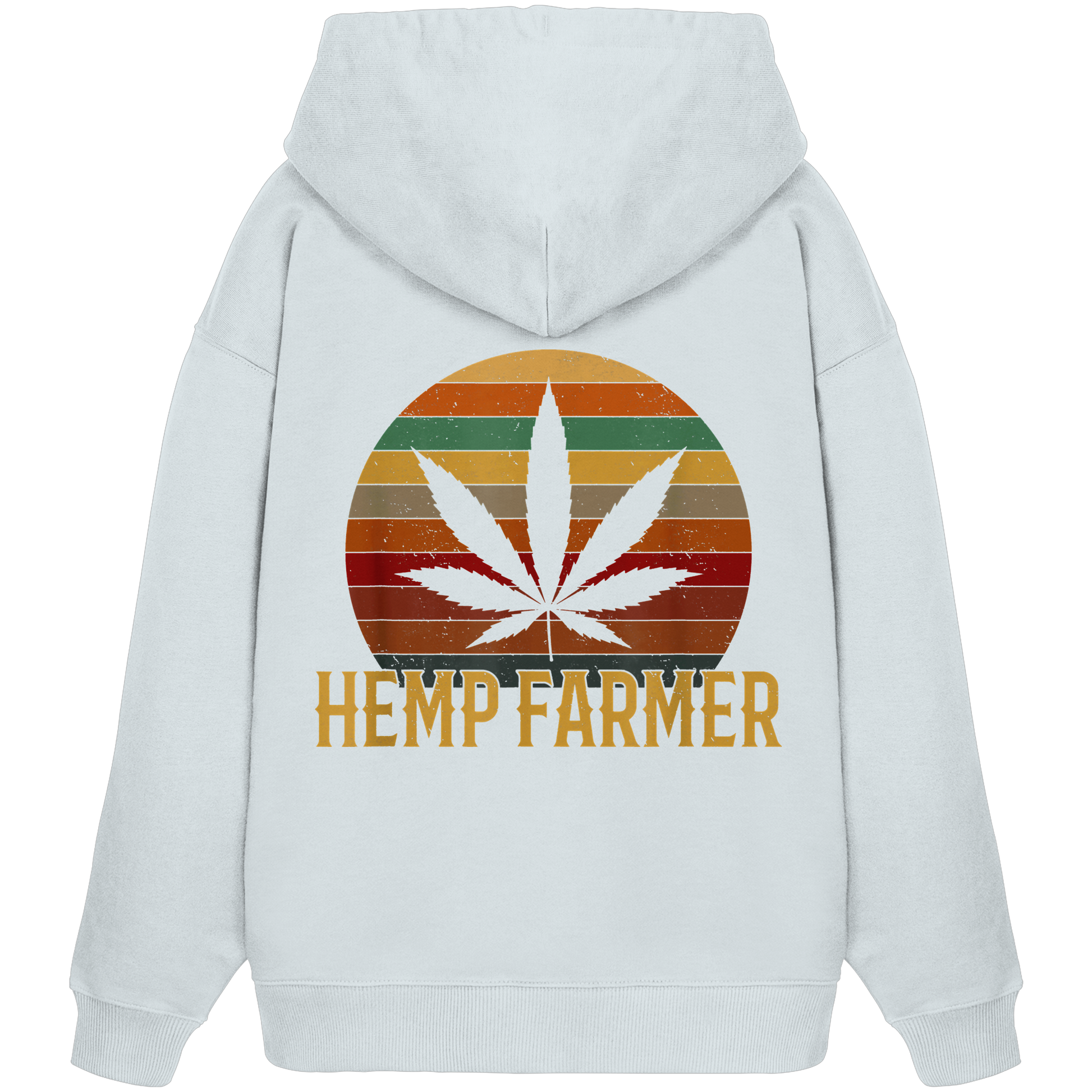 Der Slogan "Hemp Farmer" in einer kräftigen, rustikalen Schrift unterstreicht die naturbezogene Botschaft.