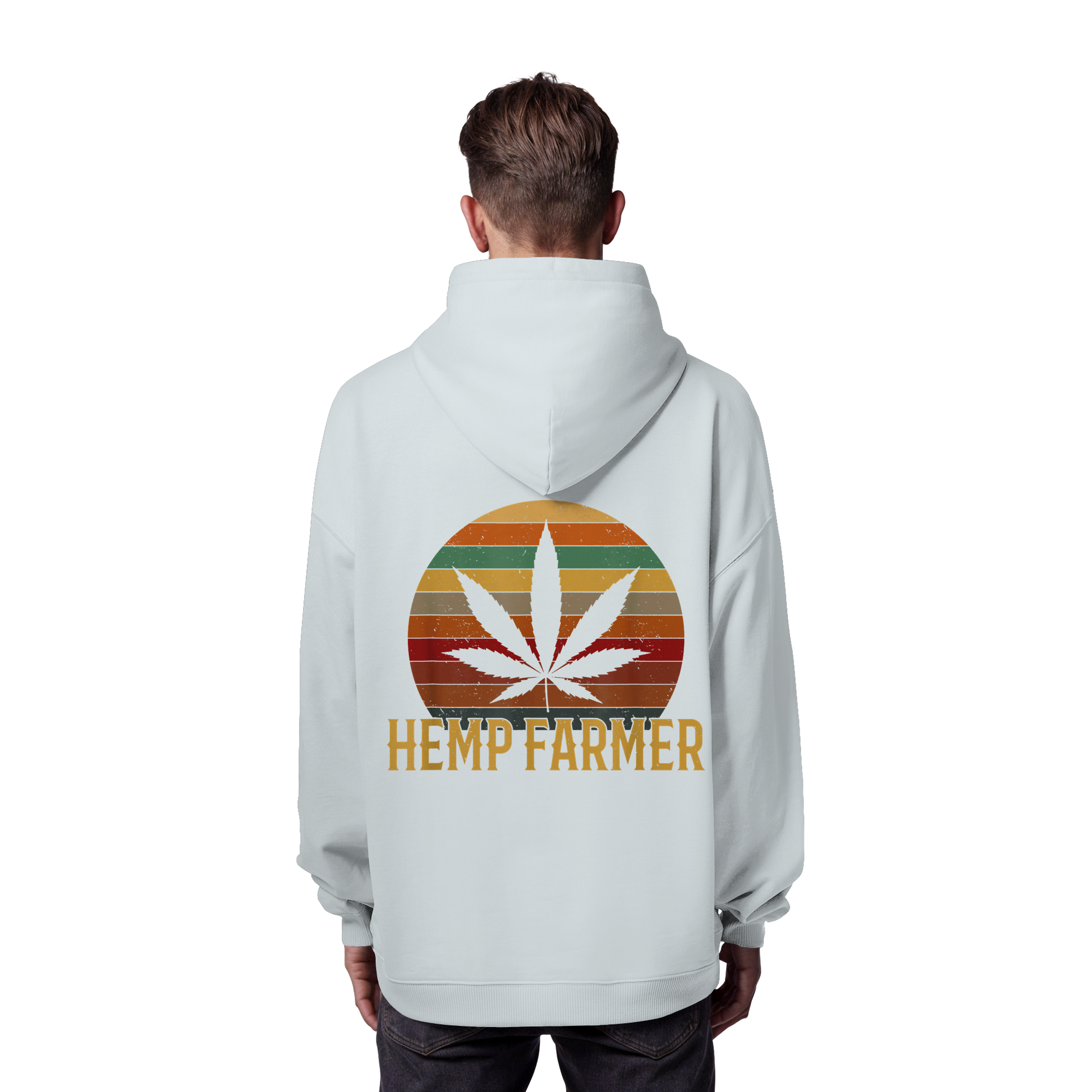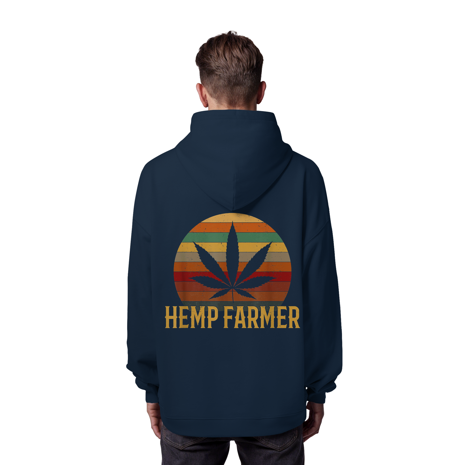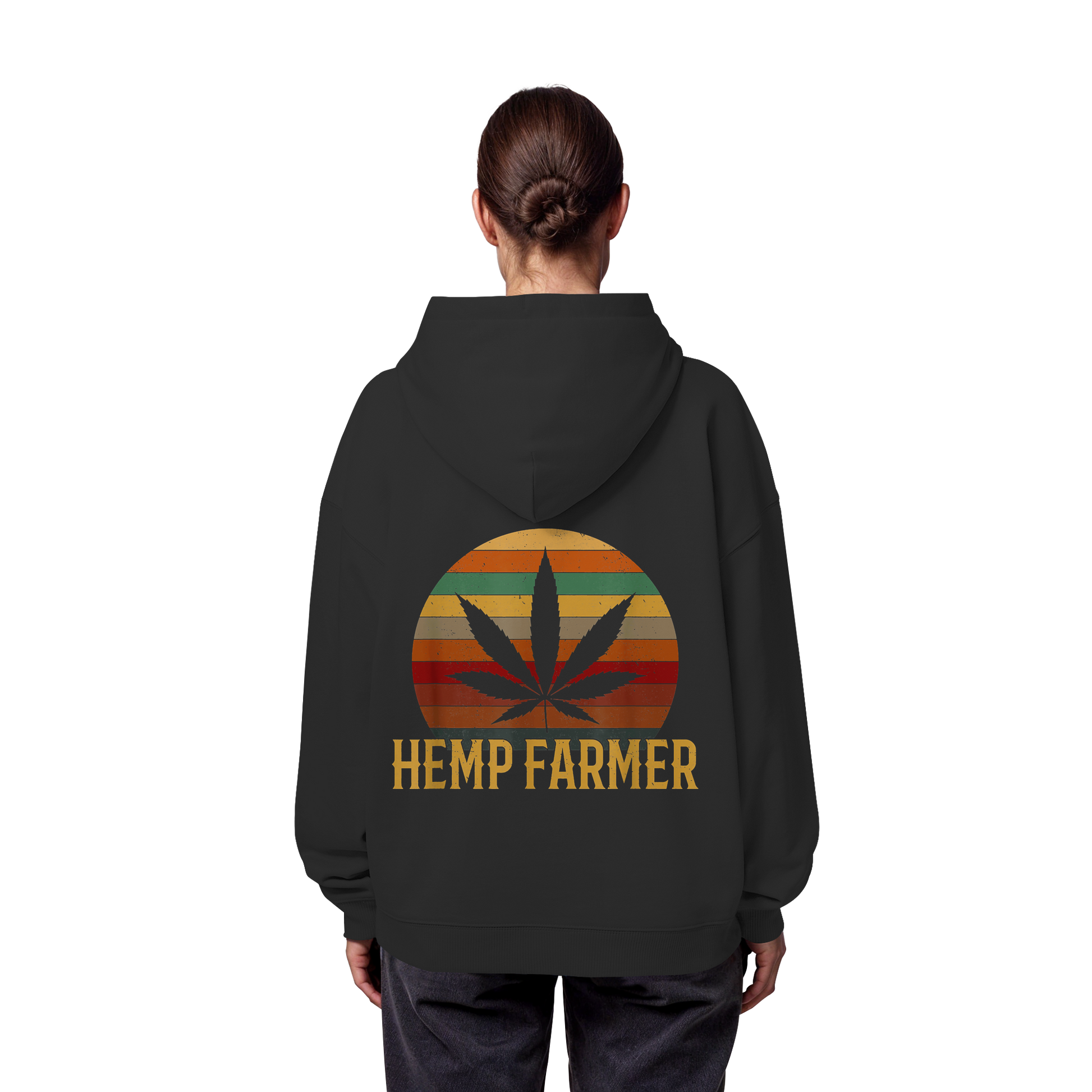 Der Slogan "Hemp Farmer" in einer kräftigen, rustikalen Schrift unterstreicht die naturbezogene Botschaft.