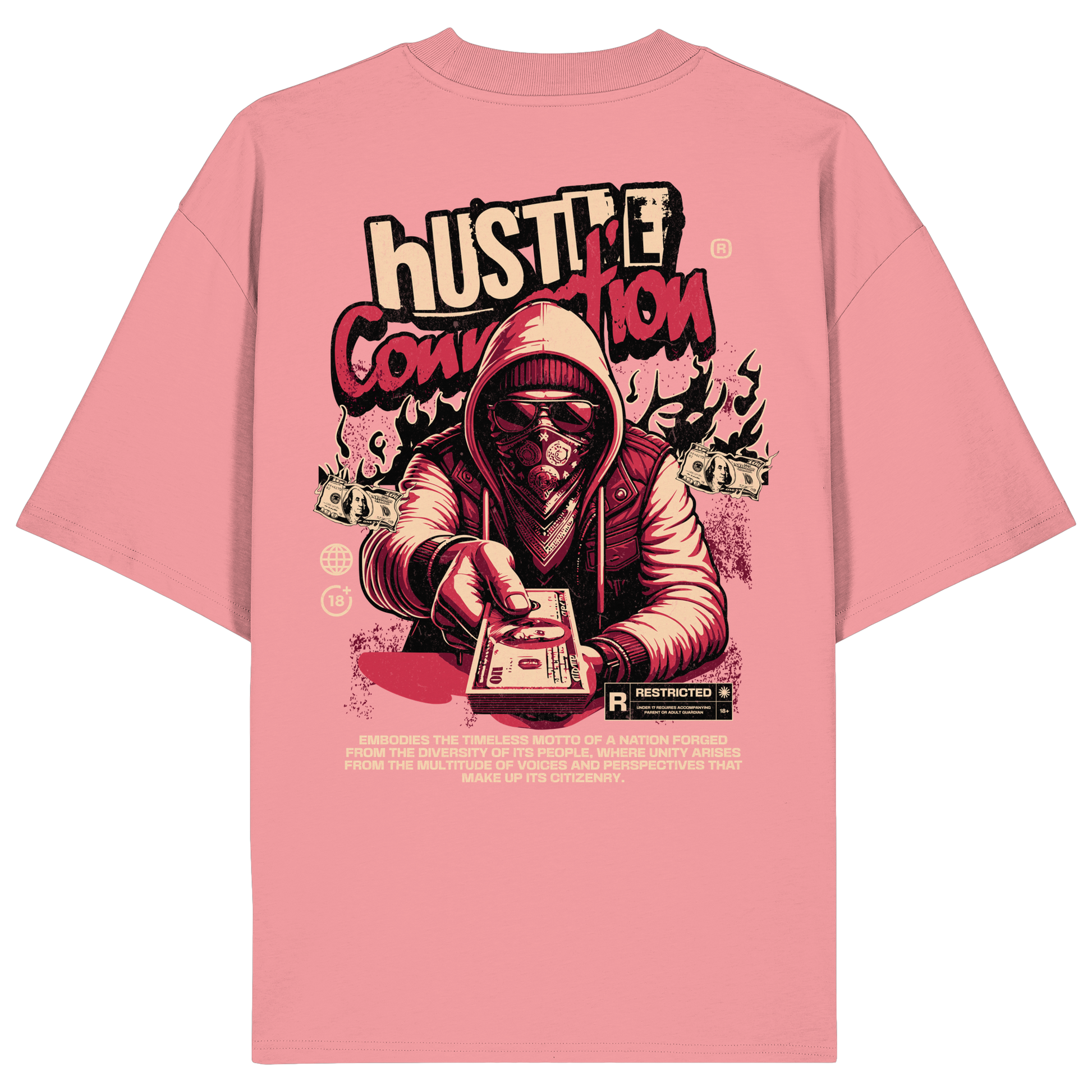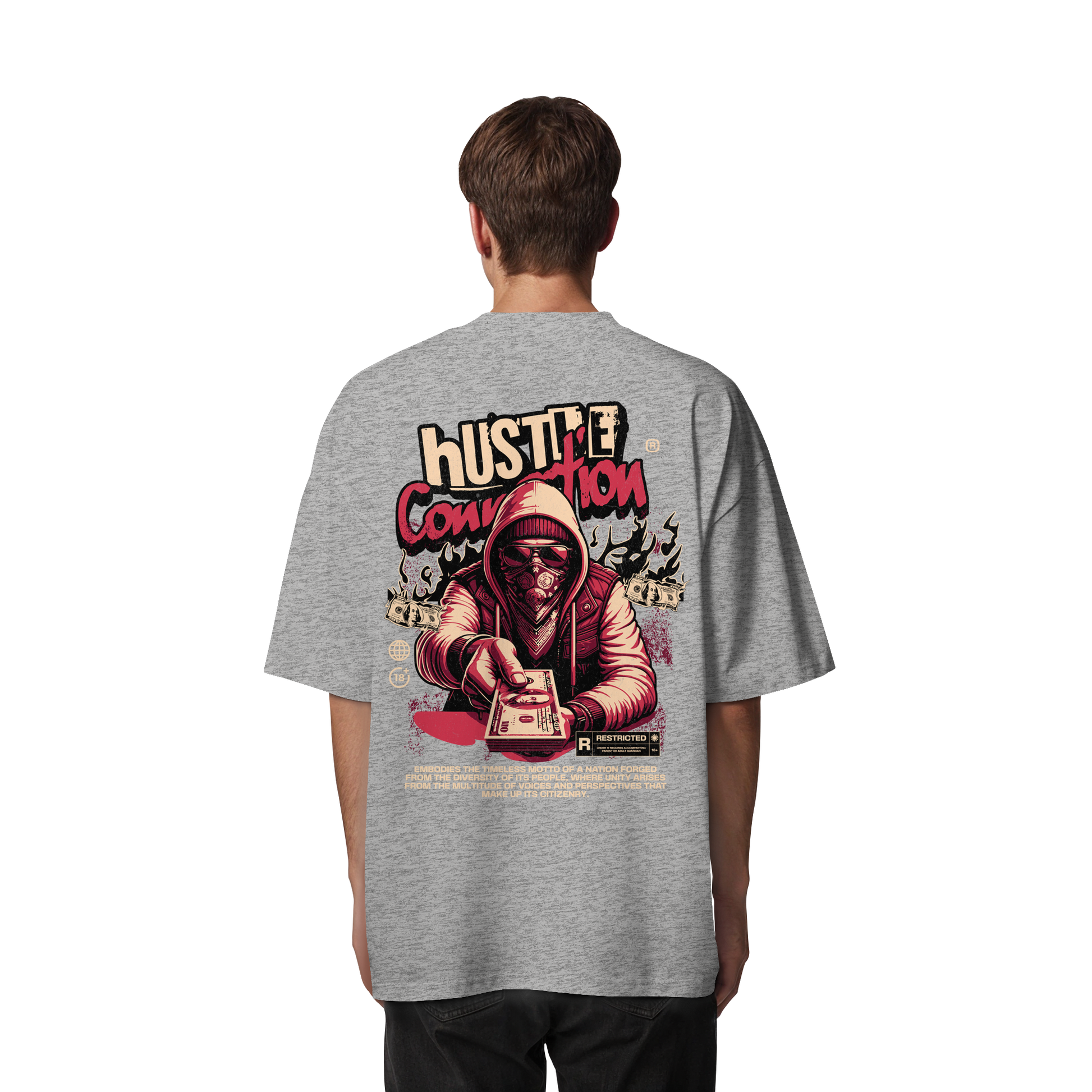 Unser "Money - Organic Oversize Shirt" vereint urbanen Style mit nachhaltiger Qualität. Die markante Grafik mit einem maskierten Charakter, umgeben von fliegenden Dollarnoten, symbolisiert den unaufhaltsamen Drang nach Erfolg. Die kontrastreichen Farben Rot und Schwarz verleihen dem Shirt eine kraftvolle Ausstrahlung und spiegeln Stärke und Entschlossenheit wider.