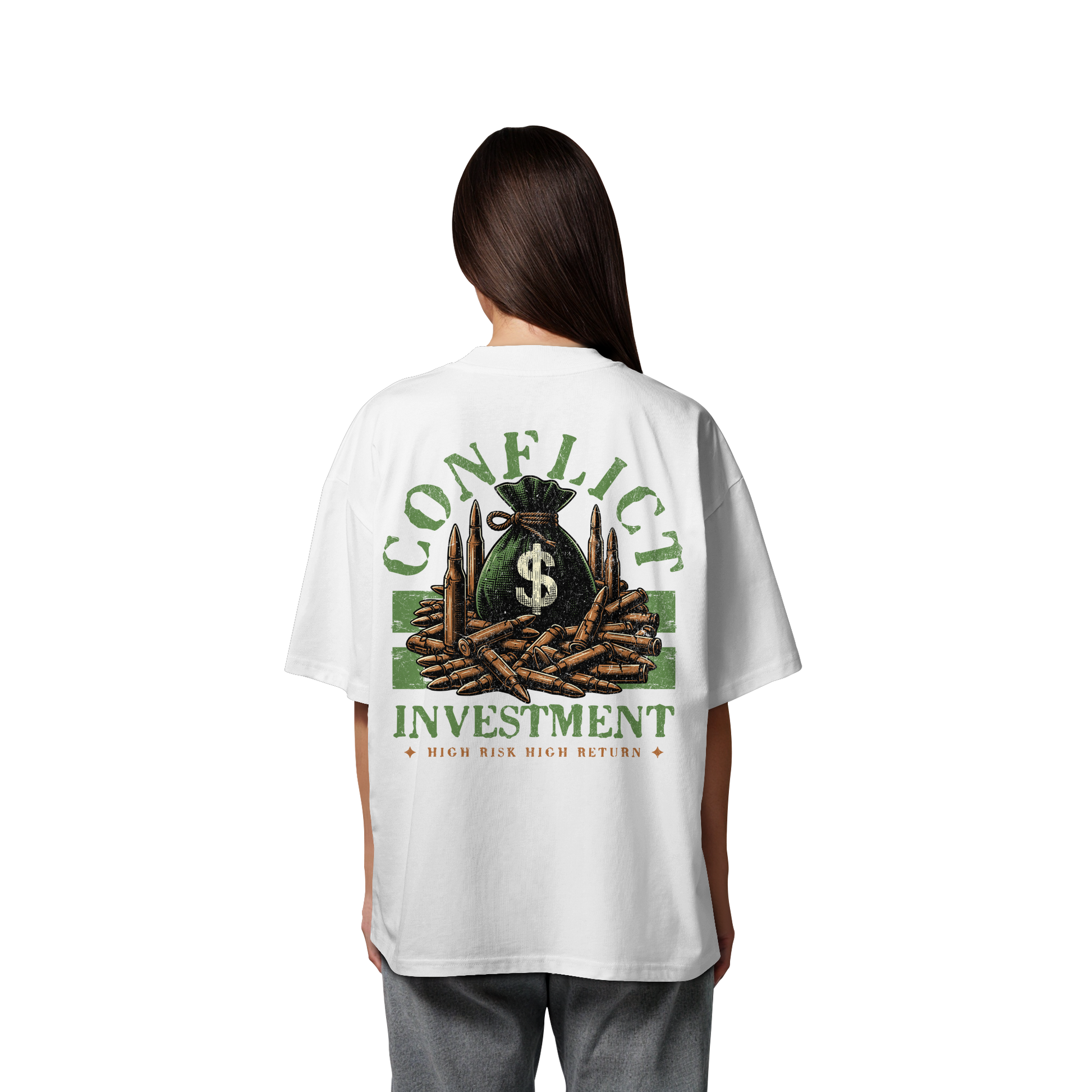 Erleben Sie das Gefühl von Freiheit und Rebellion mit unserem "Money - Organic Oversize Shirt". Das einzigartige Design verbindet kraftvolle visuelle Elemente und provokative Botschaften, um ein Statement zu setzen.