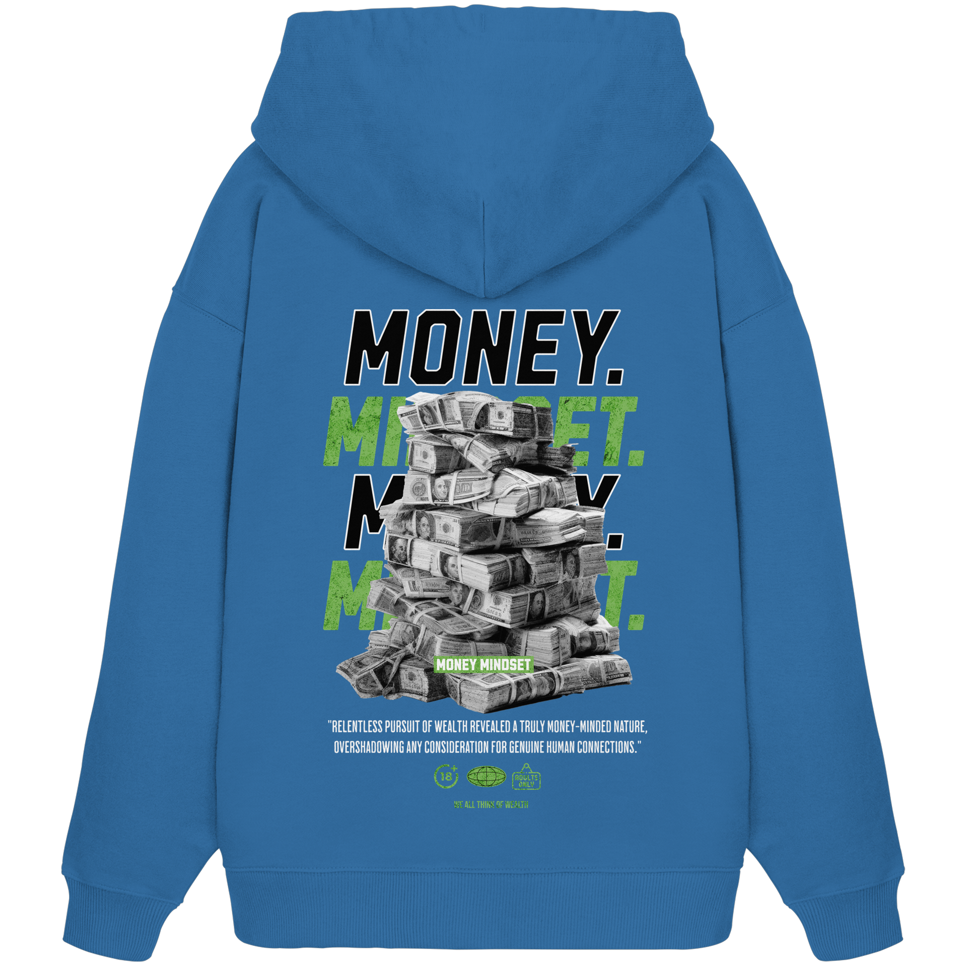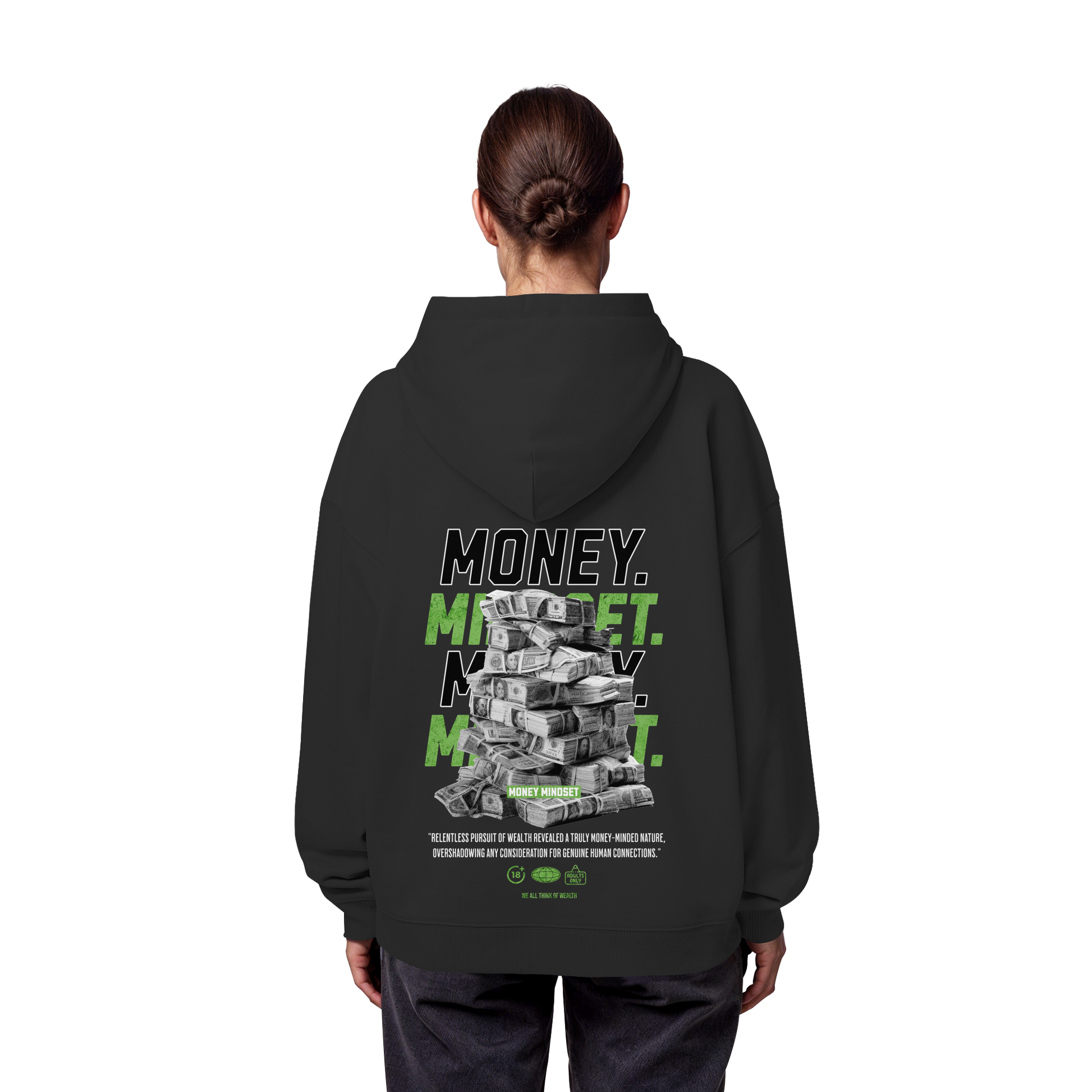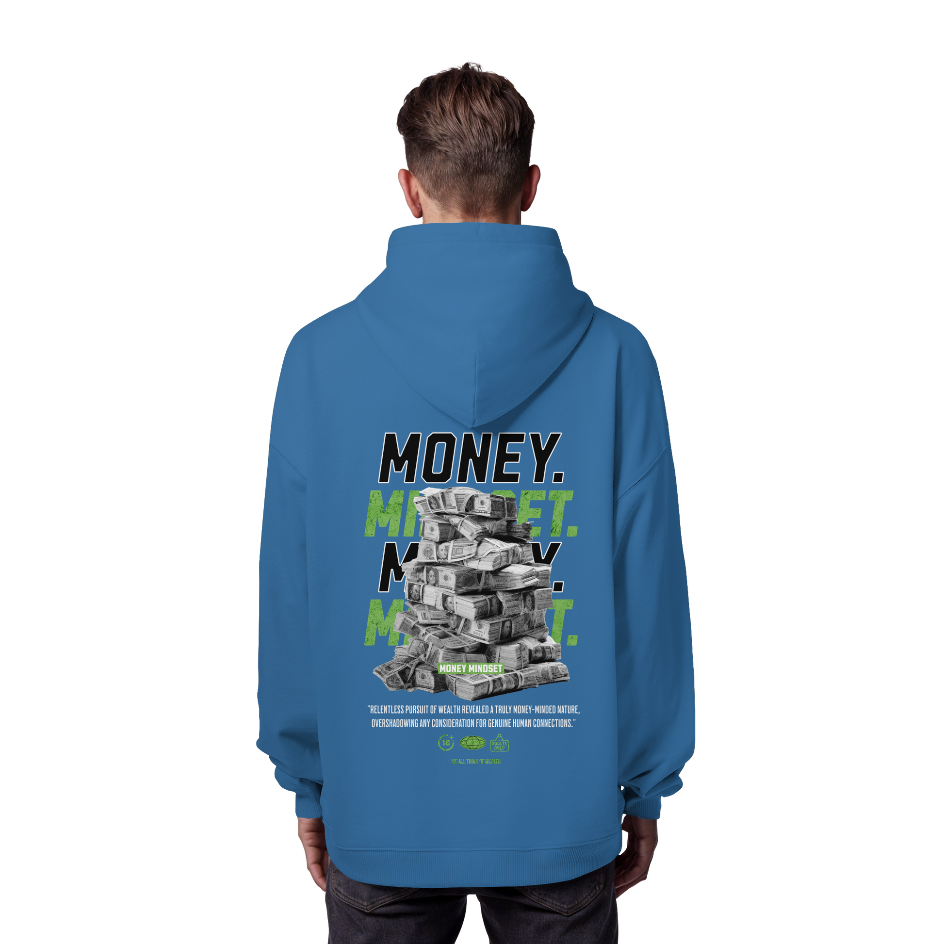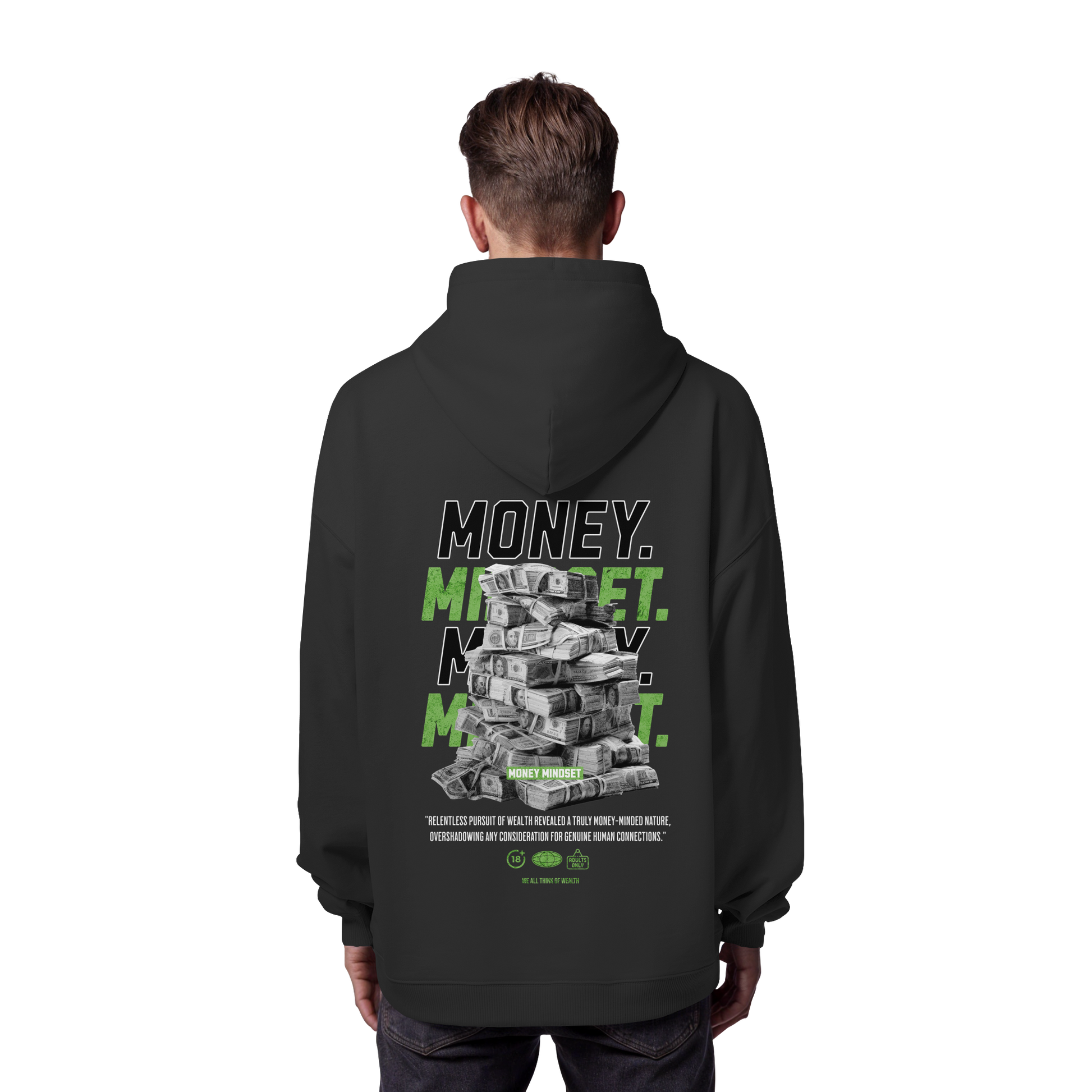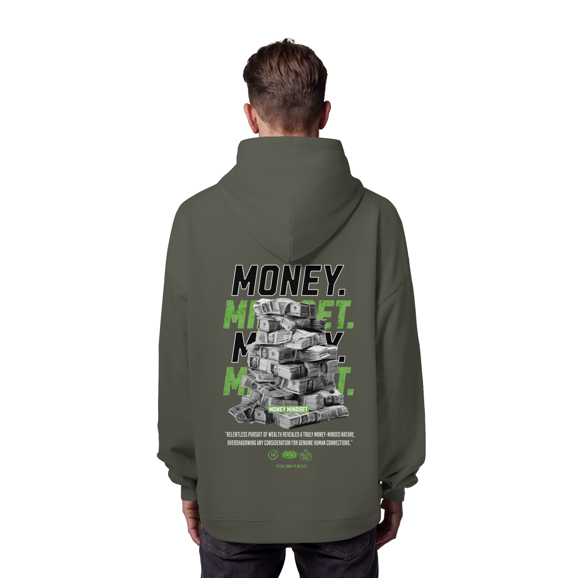 Mit unserem exklusiven "Money - Premium 350 g/m² Oversize Hoodie" tragen Sie nicht nur ein Kleidungsstück, sondern ein Statement. Lassen Sie sich von dem eindrucksvollen Design inspirieren, das eine Botschaft von Wohlstand und Erfolg vermittelt.