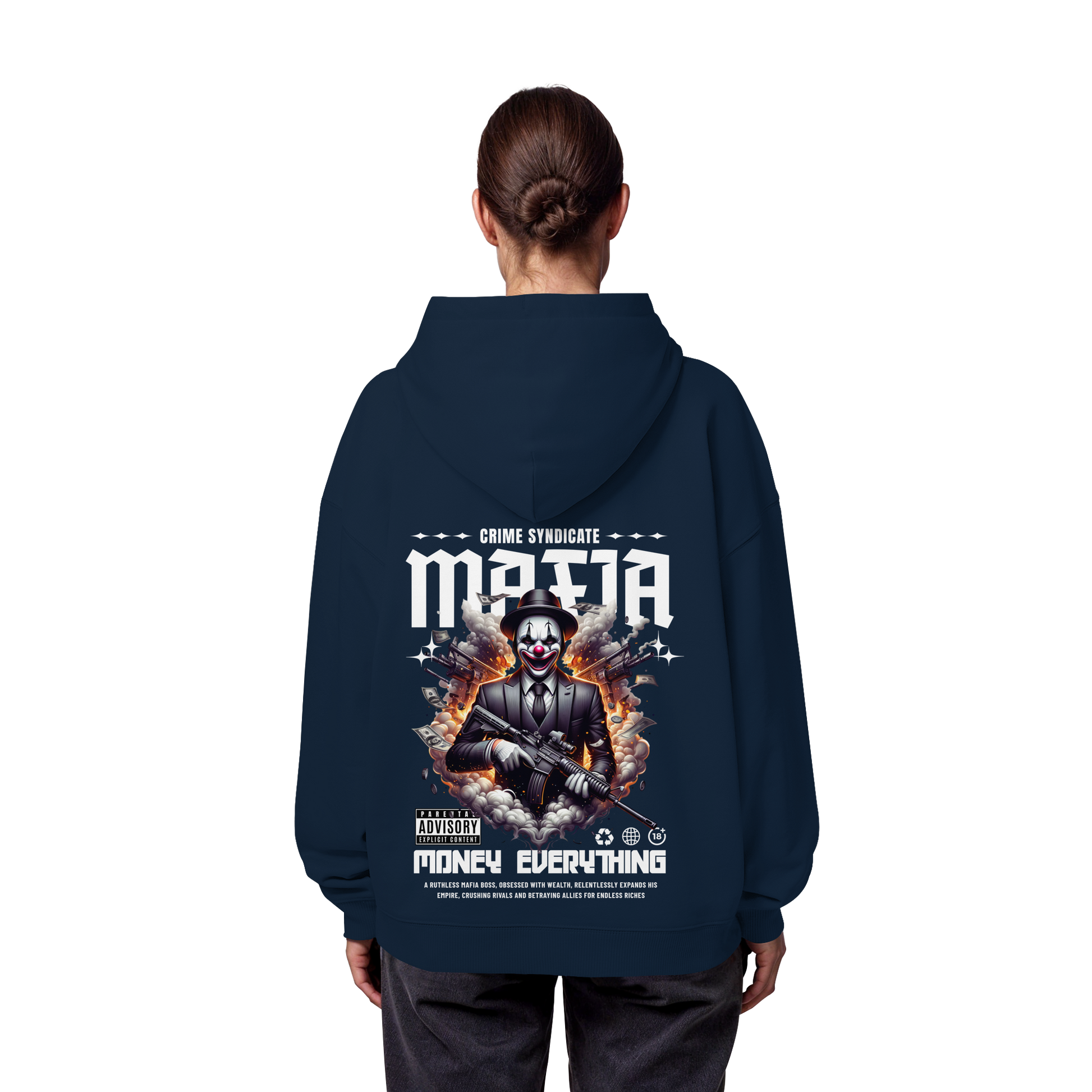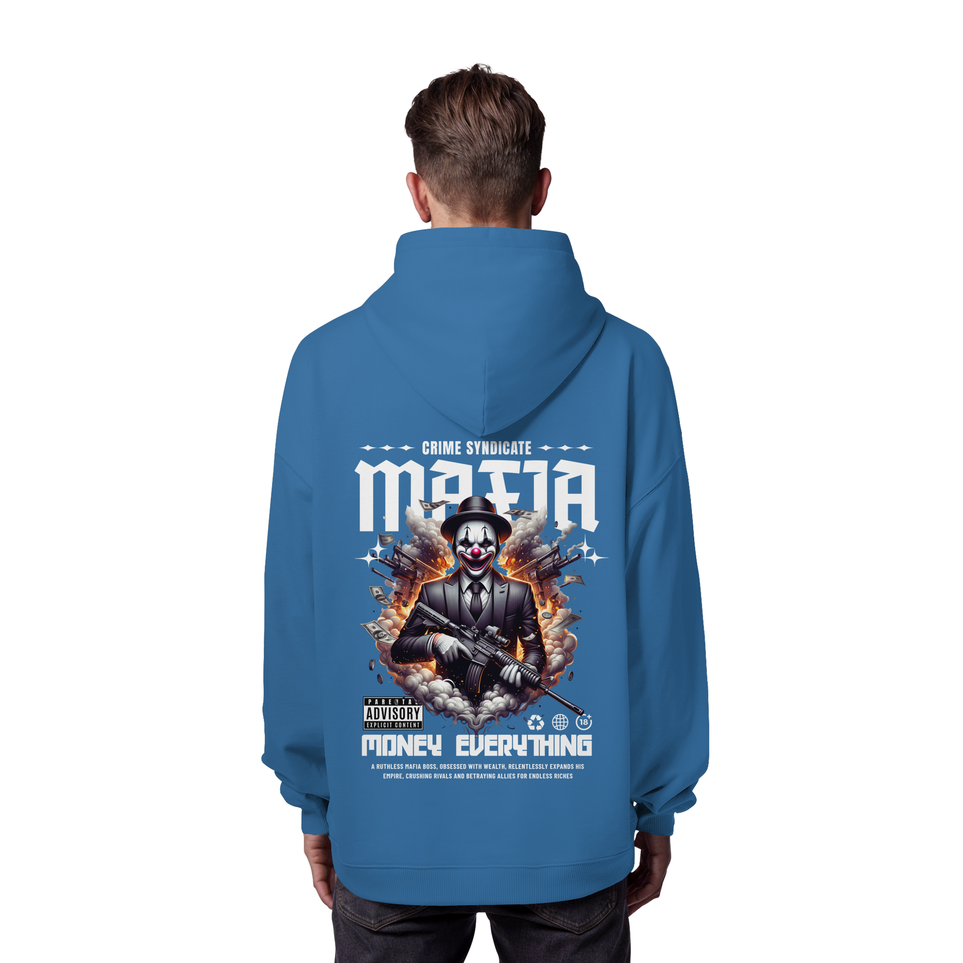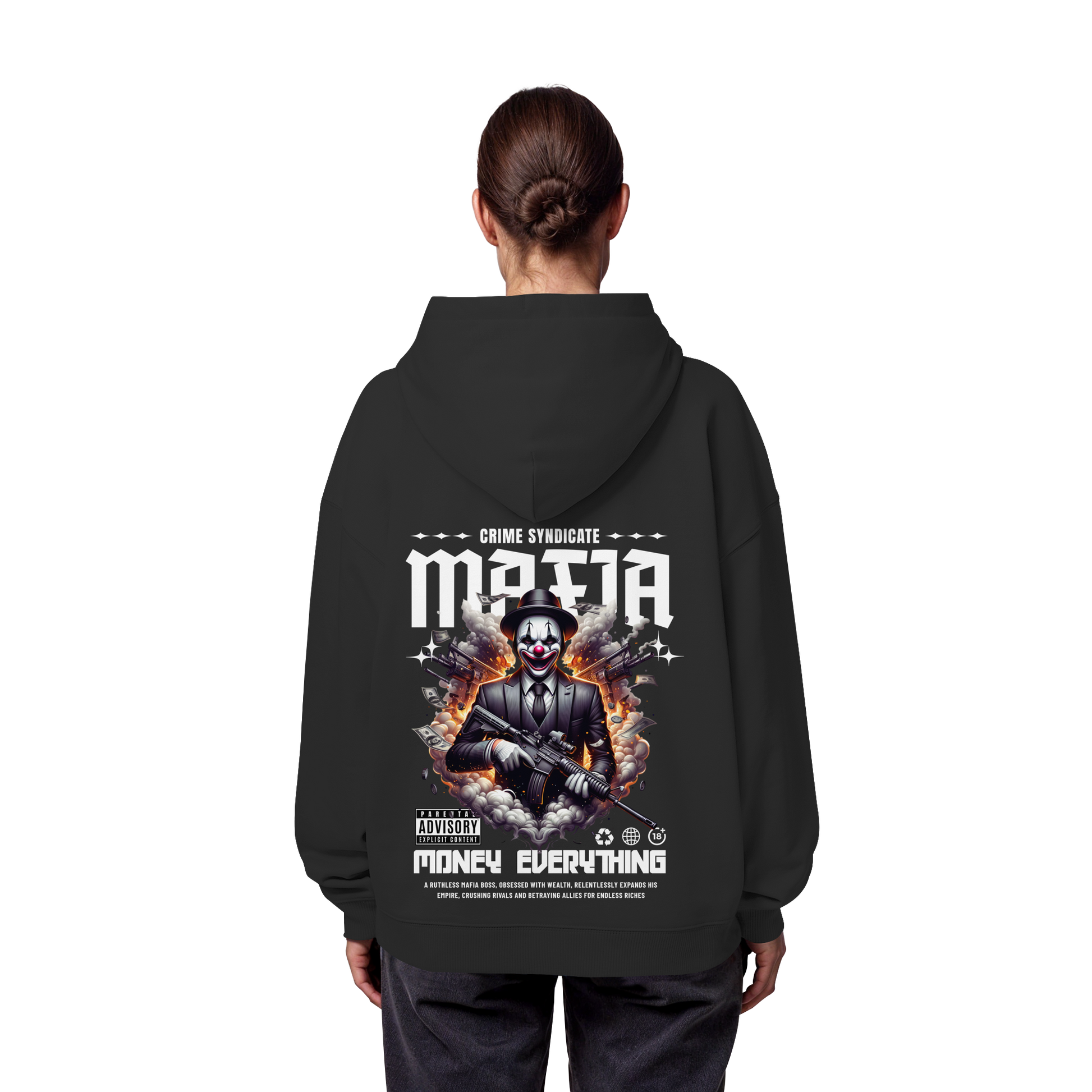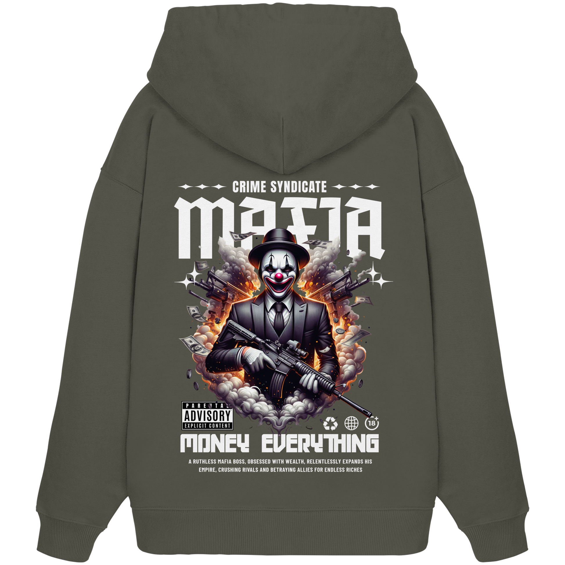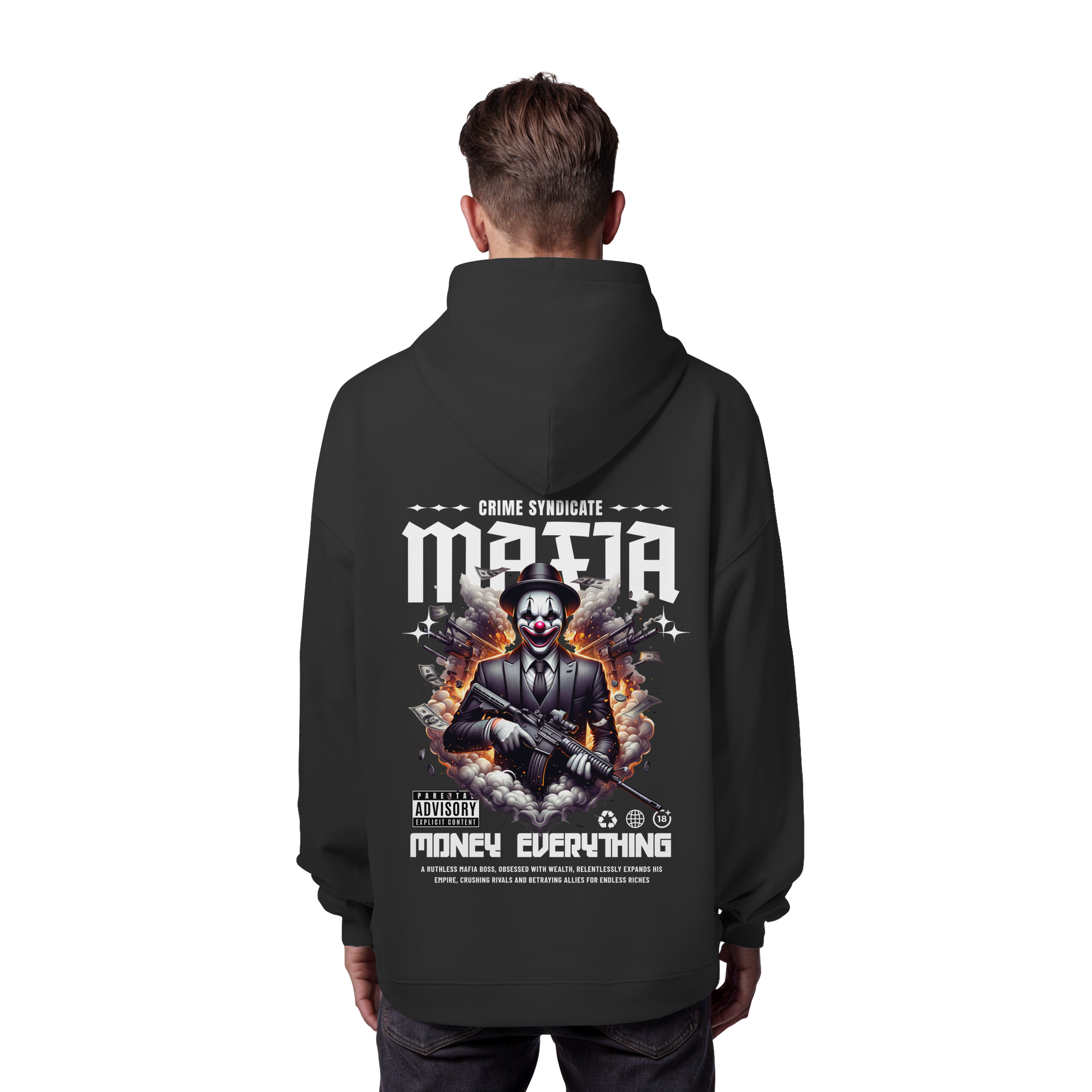 Der „Money - Organic Oversize Hoodie“ vereint urbanen Chic mit einem Hauch von Rebellion. Sein einzigartiges Design mit einem auffälligen Clown-Motiv und Geldscheinen symbolisiert Stärke und Unabhängigkeit.