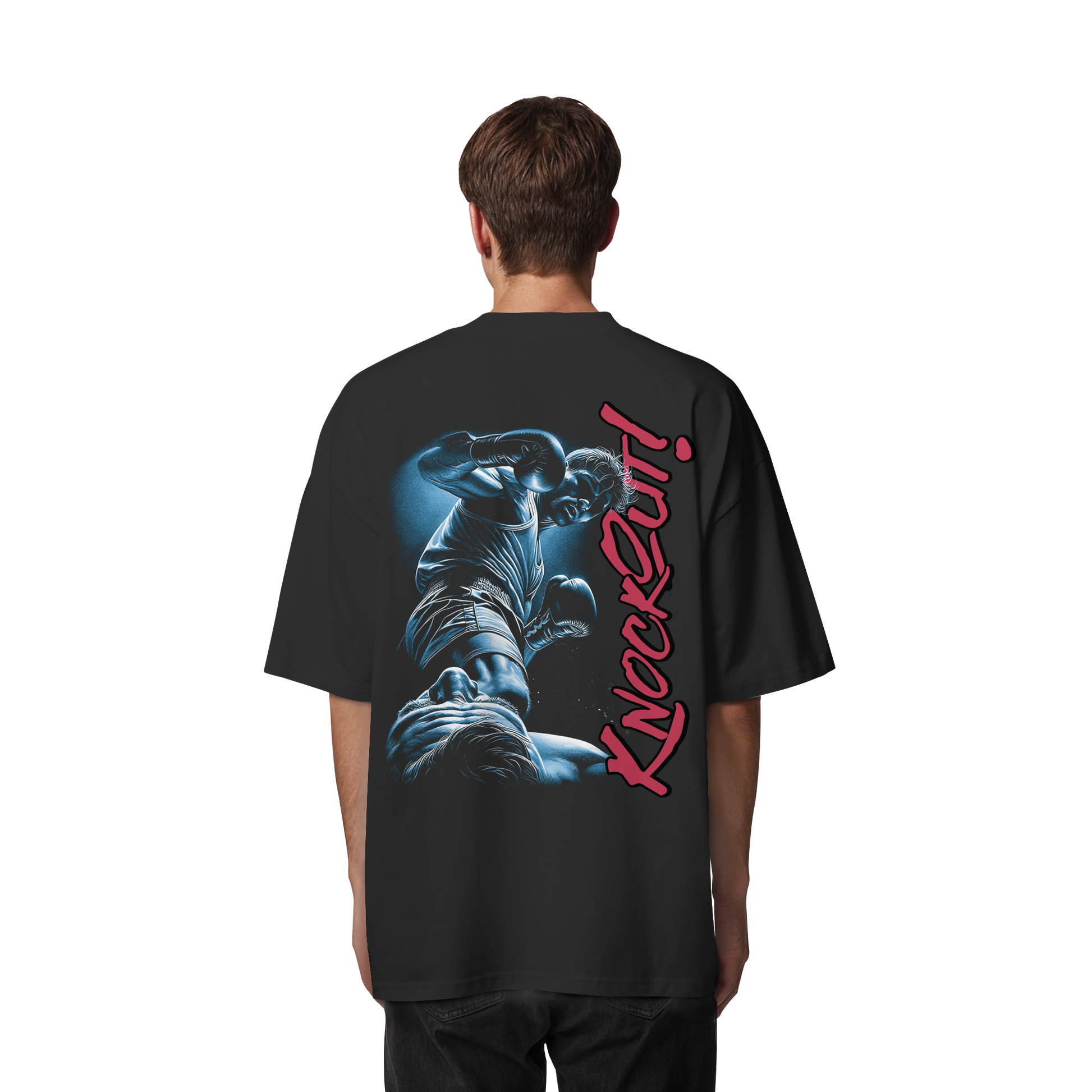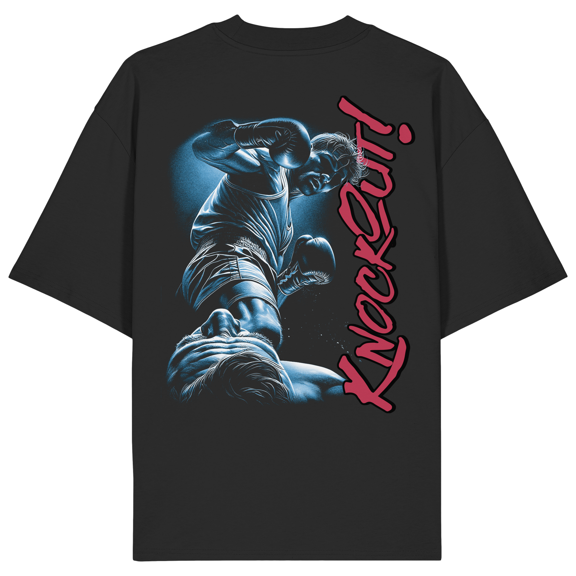 Der auffällige "Knockout"-Schriftzug in leuchtendem Rot verleiht dem Shirt eine rebellische Note. Die realistische Darstellung und die Schattierungseffekte sorgen für eine dreidimensionale Optik, die garantiert alle Blicke auf sich zieht.