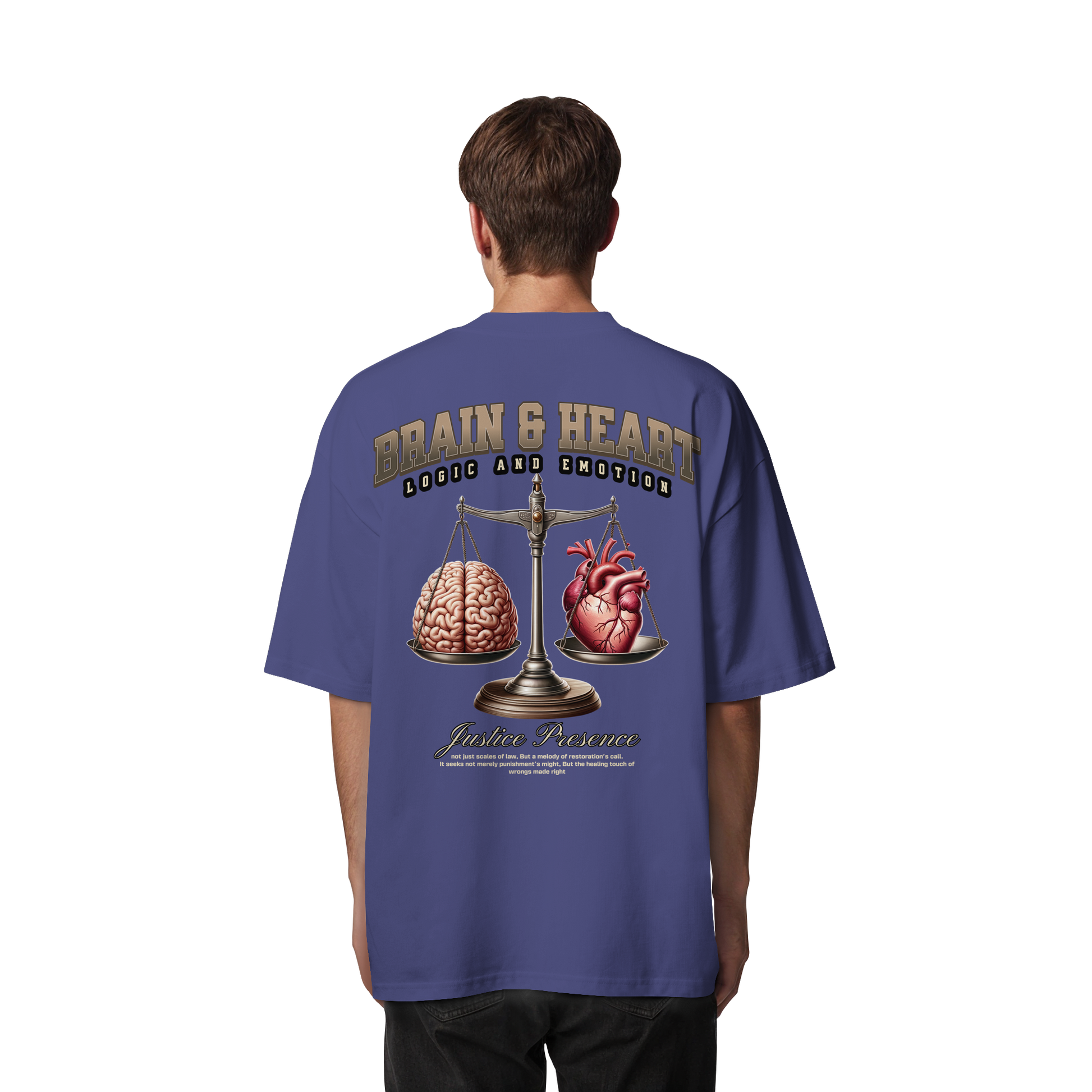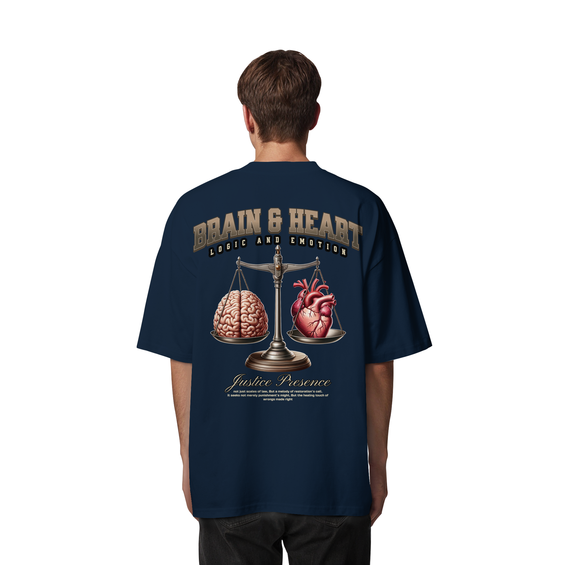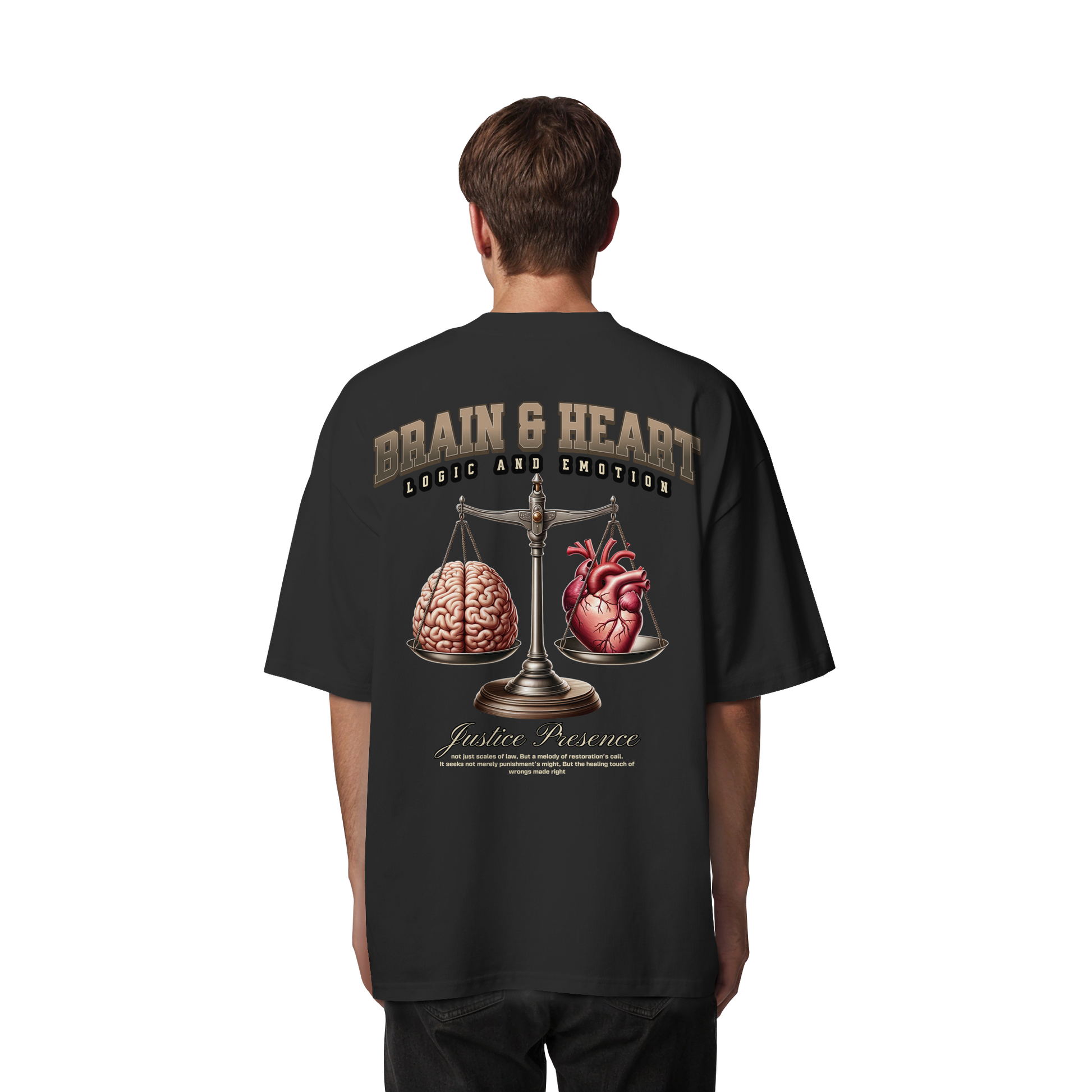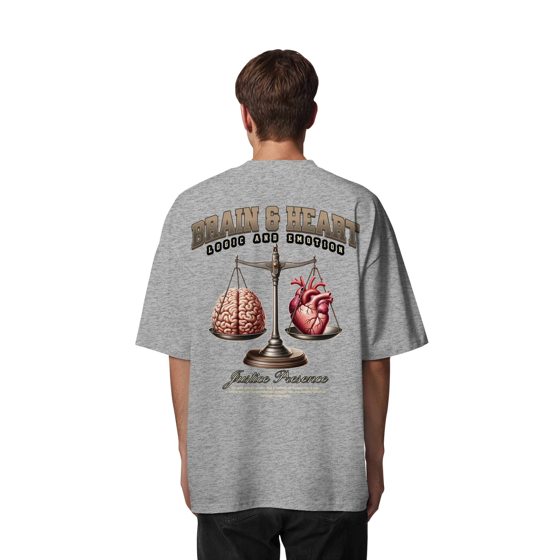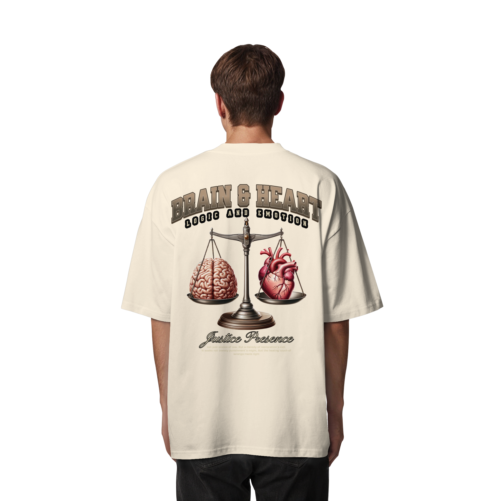 Unser "Streetwear - Organic Oversize Shirt" vereint das Beste aus beiden Welten. Mit einem einzigartigen Design, das Gehirn und Herz auf einer Waage zeigt, symbolisiert es die harmonische Verbindung von Verstand und Gefühl.