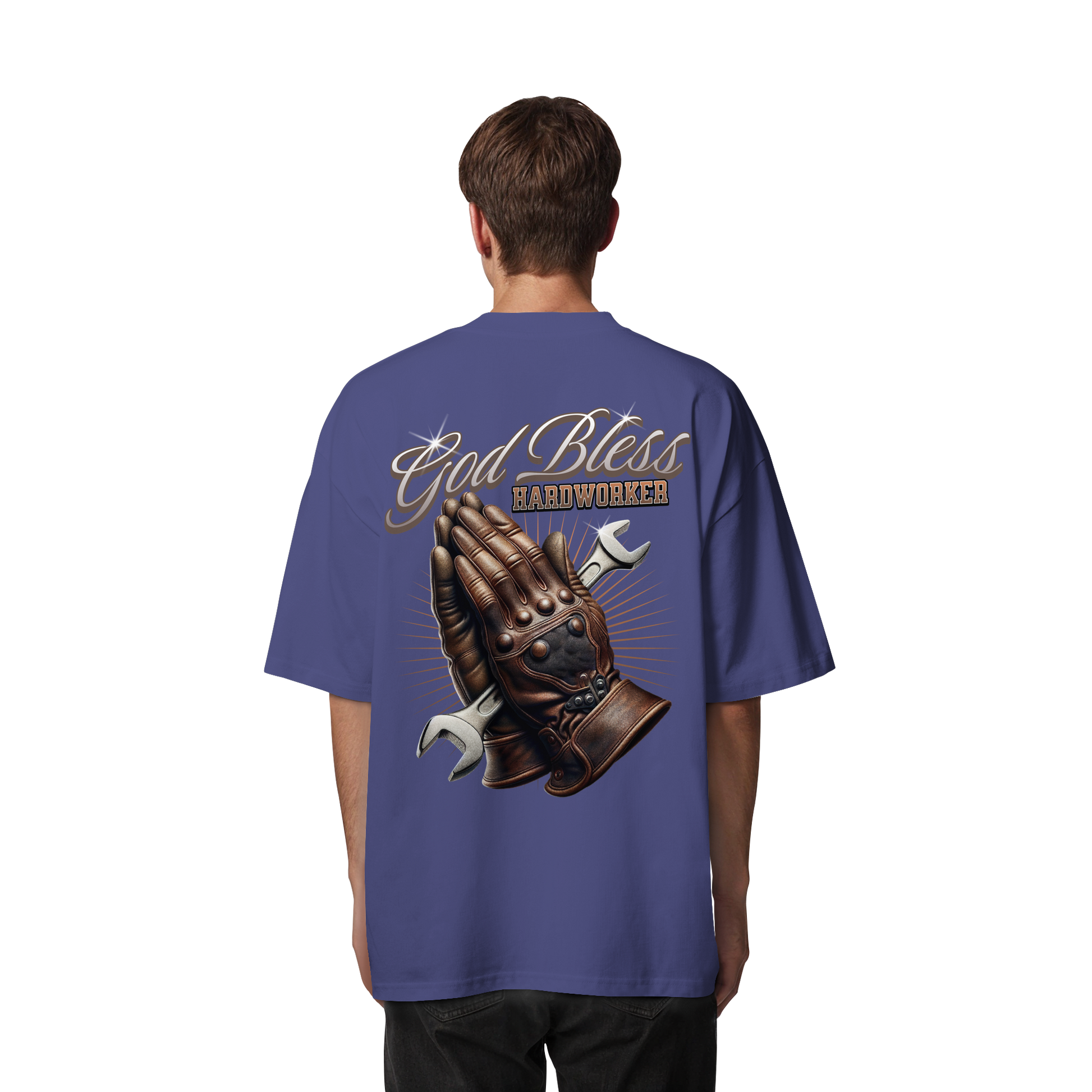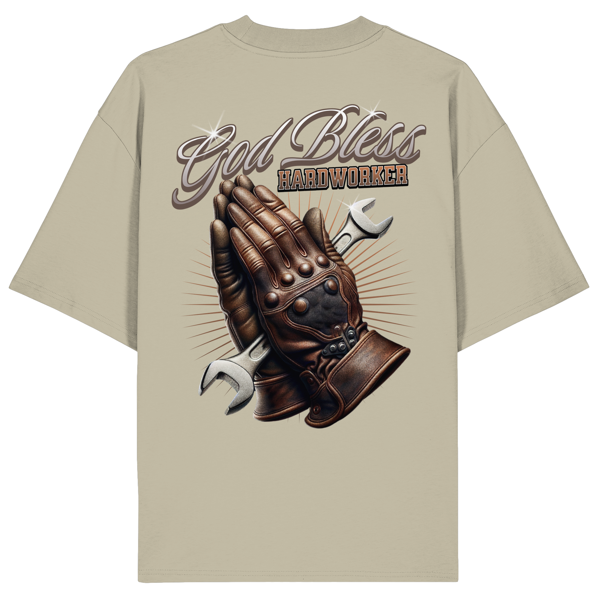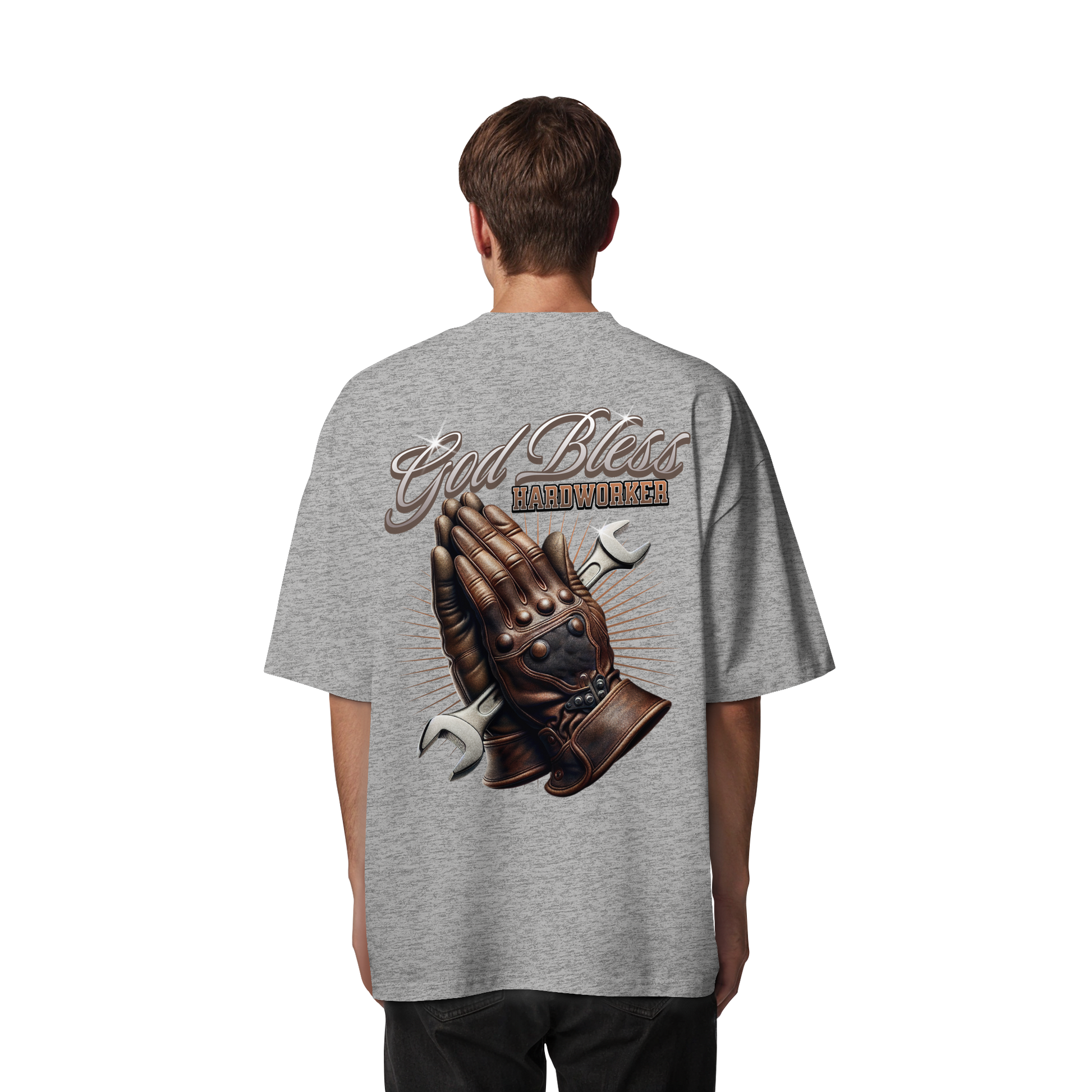 Unser "Streetwear - Organic Oversize Shirt" bringt das Herz des urbanen Lebens auf deine Haut. Das einzigartige Design vereint ikonische Arbeitshandschuhe in Gebetshaltung mit funkelnden Werkzeugen, um den unermüdlichen Geist der Handwerker zu ehren.