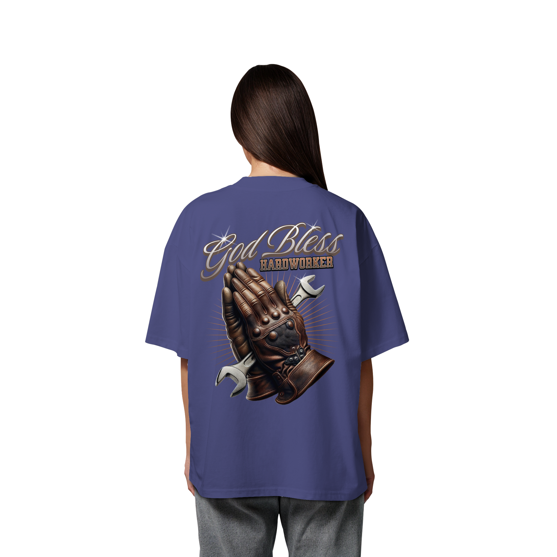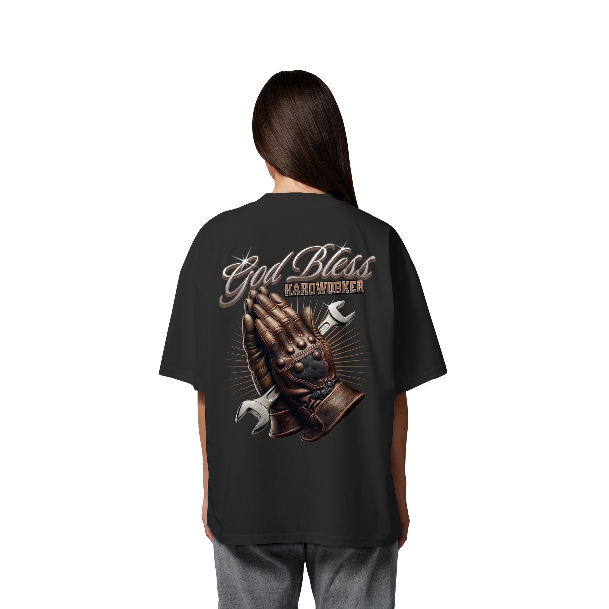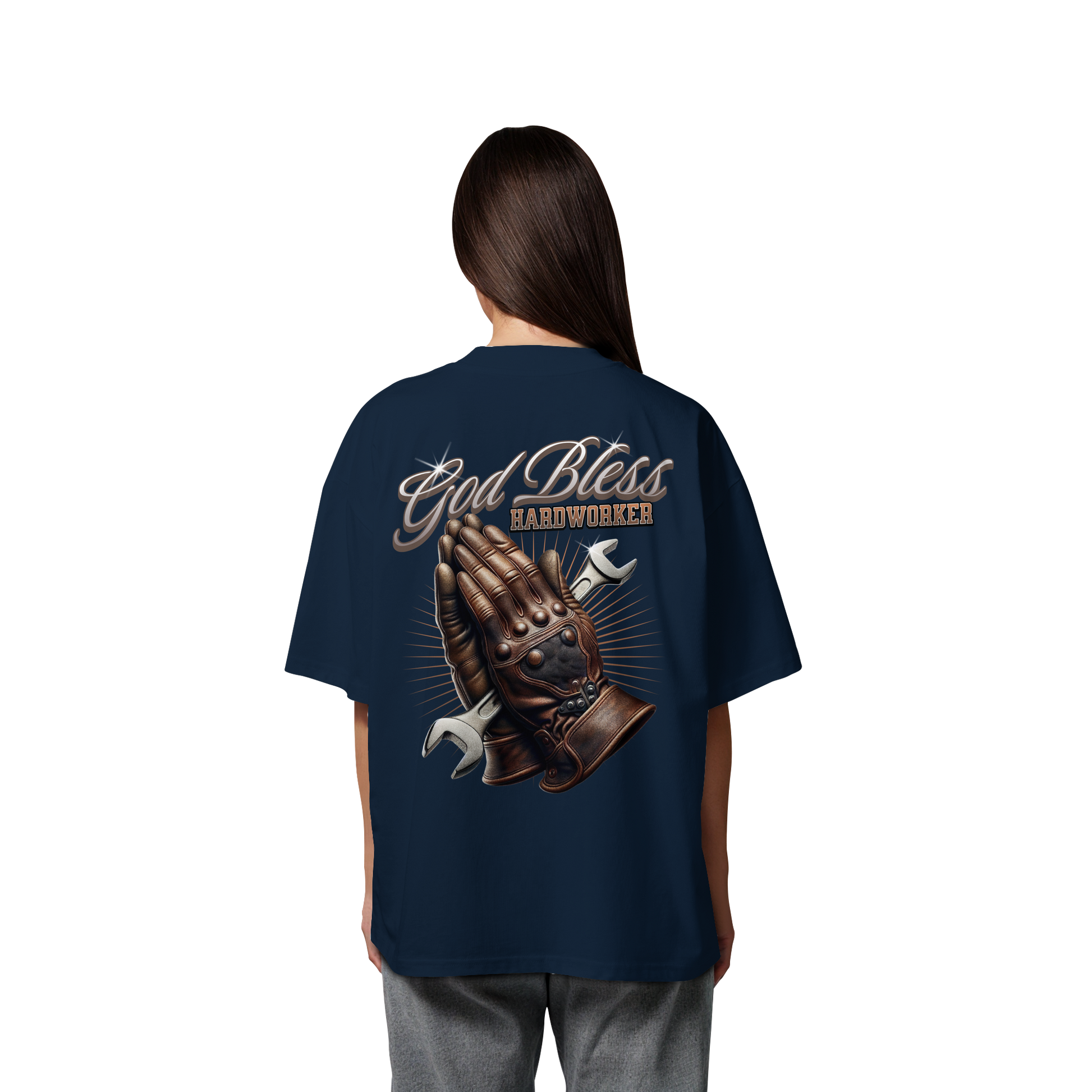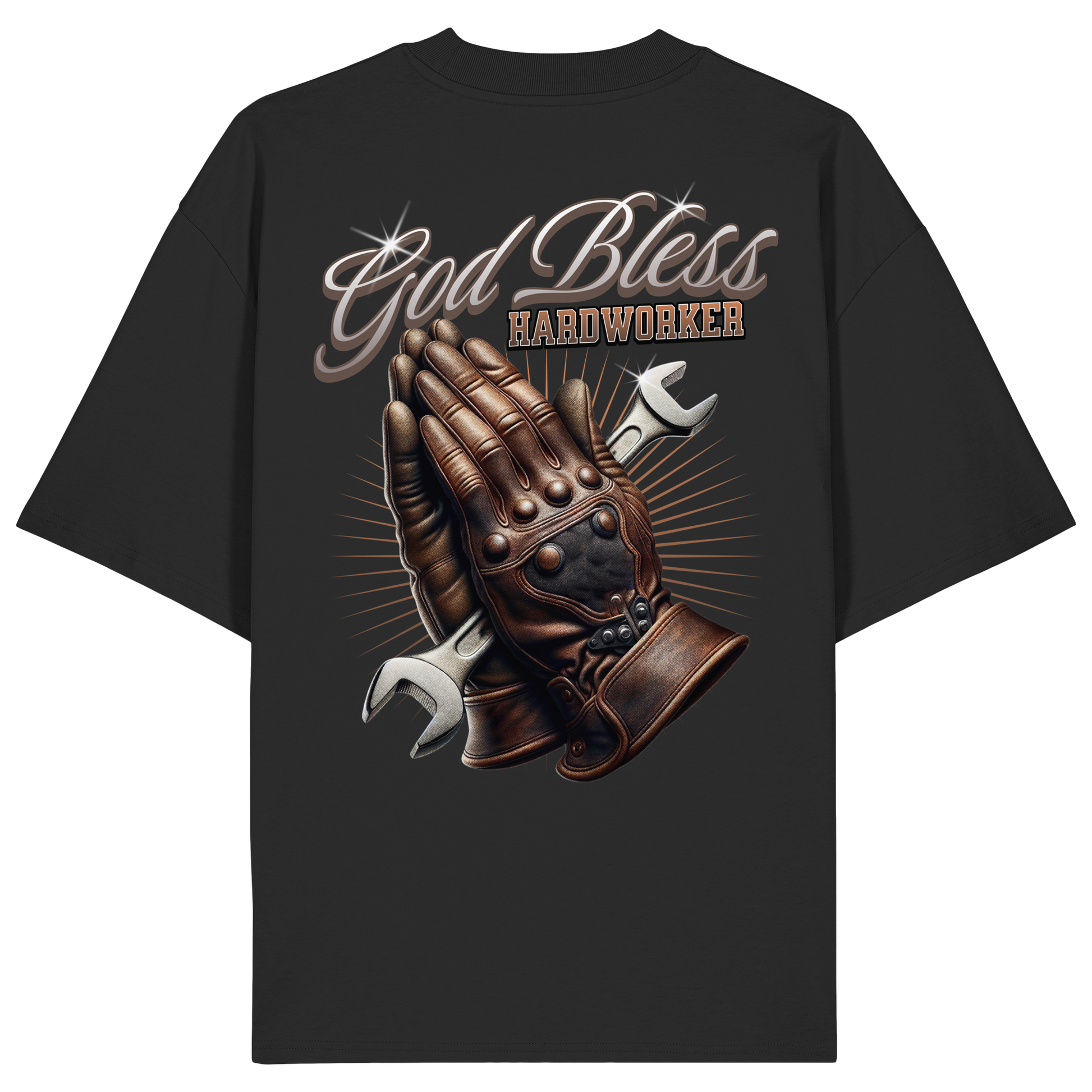 Unser "Streetwear - Organic Oversize Shirt" bringt das Herz des urbanen Lebens auf deine Haut. Das einzigartige Design vereint ikonische Arbeitshandschuhe in Gebetshaltung mit funkelnden Werkzeugen, um den unermüdlichen Geist der Handwerker zu ehren.