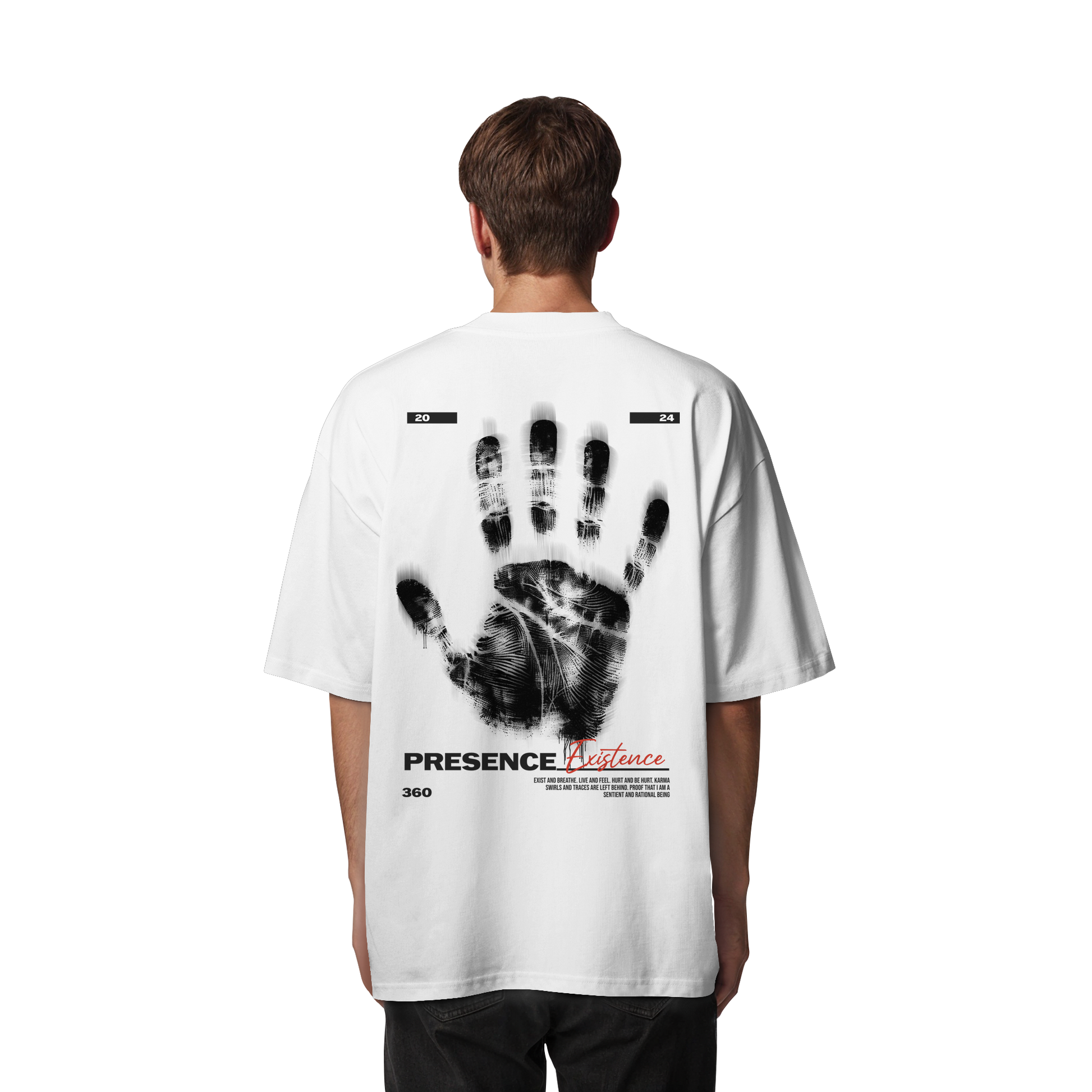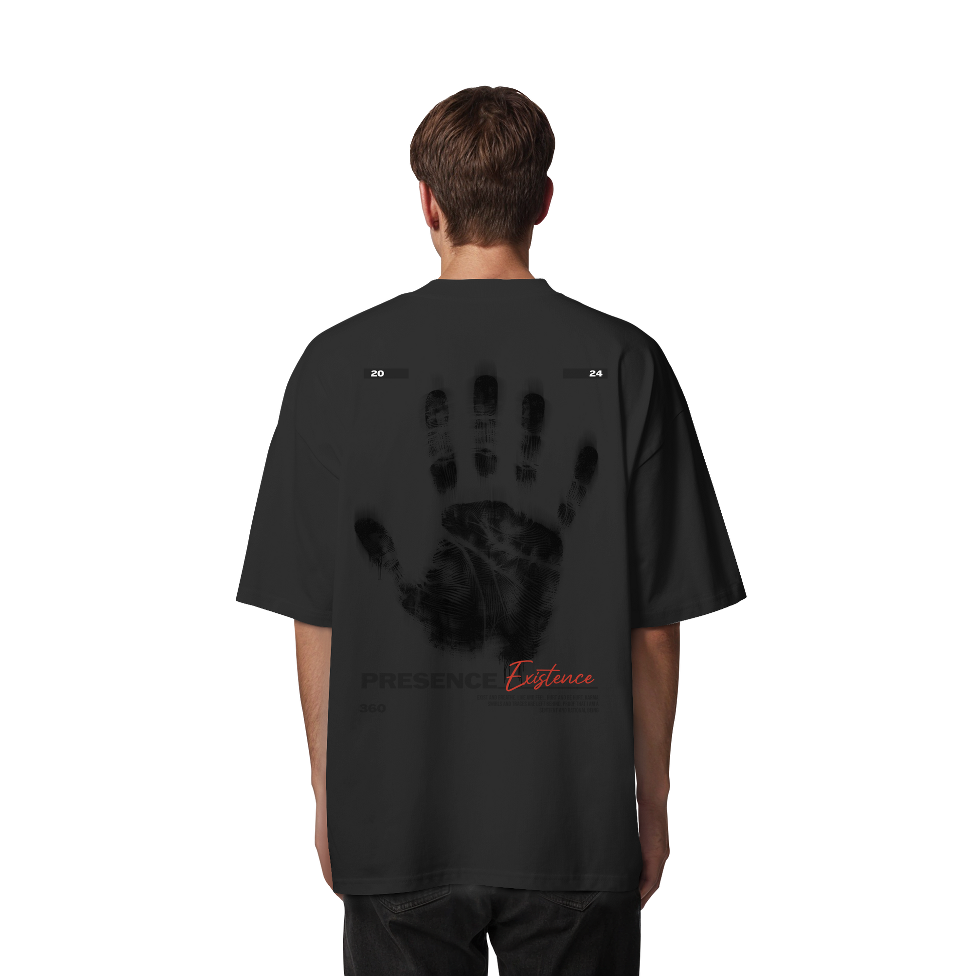 Unser Premium 200g/m² Oversize T-Shirt vereint den urbanen Stil mit hochwertiger Verarbeitung. Der Handabdruck, ein Symbol für Individualität und Ausdruck, zieht alle Blicke auf sich. Die subtilen Schwarz- und Rottöne harmonieren perfekt und erzeugen eine kraftvolle Aussage.